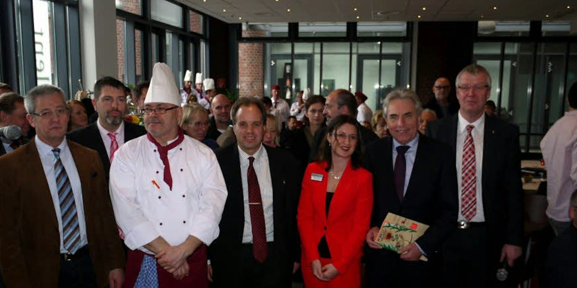Zur Eröffnung des Bistro „Excellent“ kam viel Prominenz nach Kalk, darunter Oberbürgermeister Jürgen Roters (2.v.r.). Foto rechts: Mitarbeiter präsentieren die Speisen.