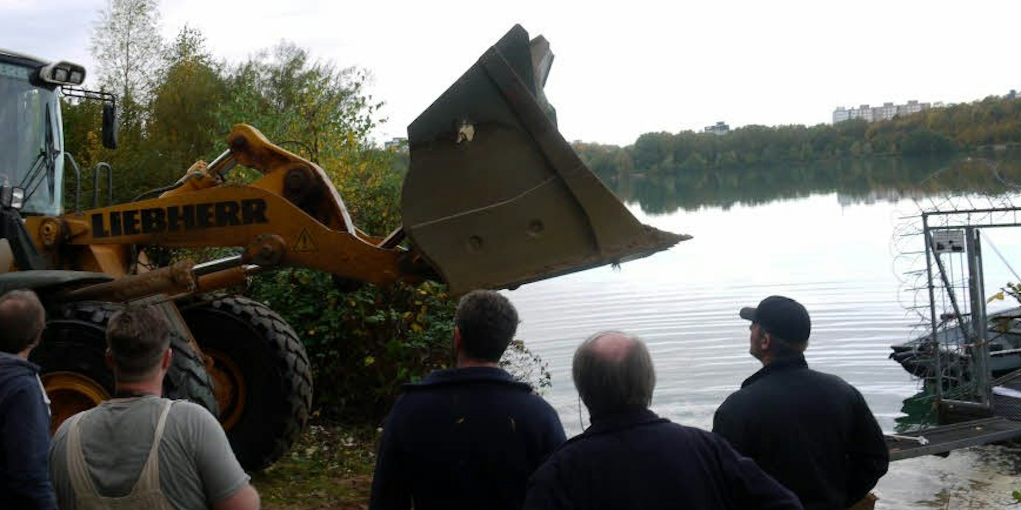 Rath-Heumar/Neubrück – Ihre Sportgeräte hatten mehrere Dutzend Mitglieder und Freunde des Angelvereins ASV Köln-Rath zu Hause gelassen. Nicht das Hobby, sondern ein Arbeitseinsatz stand an: Die Angler haben ihren Bootssteg am Rather See ans eigene Grundstück verlegt, vom dem aus sie ihr Hobby künftig nur noch eingeschränkt betreiben können. Die 2000 Quadratmeter große Parzelle ist nicht von der Planung der Freizeitanlage mit Badestrand und Wasserskibahnen rund um das Seegebiet betroffen – die alte Anlegestelle befand sich im hierfür vorgesehenen Uferbereich. Den Wunsch, Angelsteg und Bootsnutzung durch den Verein in das neue Konzept zu integrieren, hatte die Verwaltung abgelehnt.