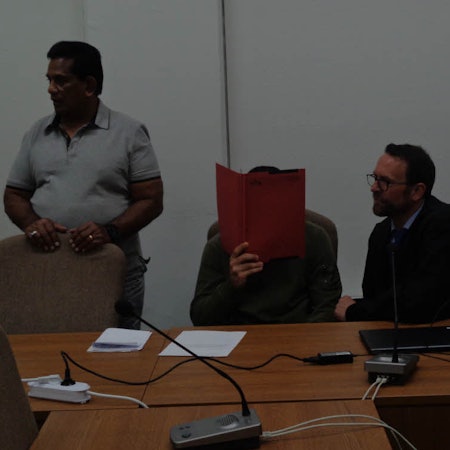 Die Stimmen, die er anscheinend ununterbrochen hört, sind wohl auch da, wenn er seine Medikamente nimmt. Die Tabletten machen ihn müde, klagt er, wohl auch ein Grund, warum er hin und wieder die Einnahme bewusst „vergisst“. Der Anwalt beantragt zum Schutz des Mannes, die Öffentlichkeit auszuschließen. Dem Antrag wird mit Blick auf den Geisteszustand des Mandanten stattgegeben. Die Verhandlung wird fortgesetzt.