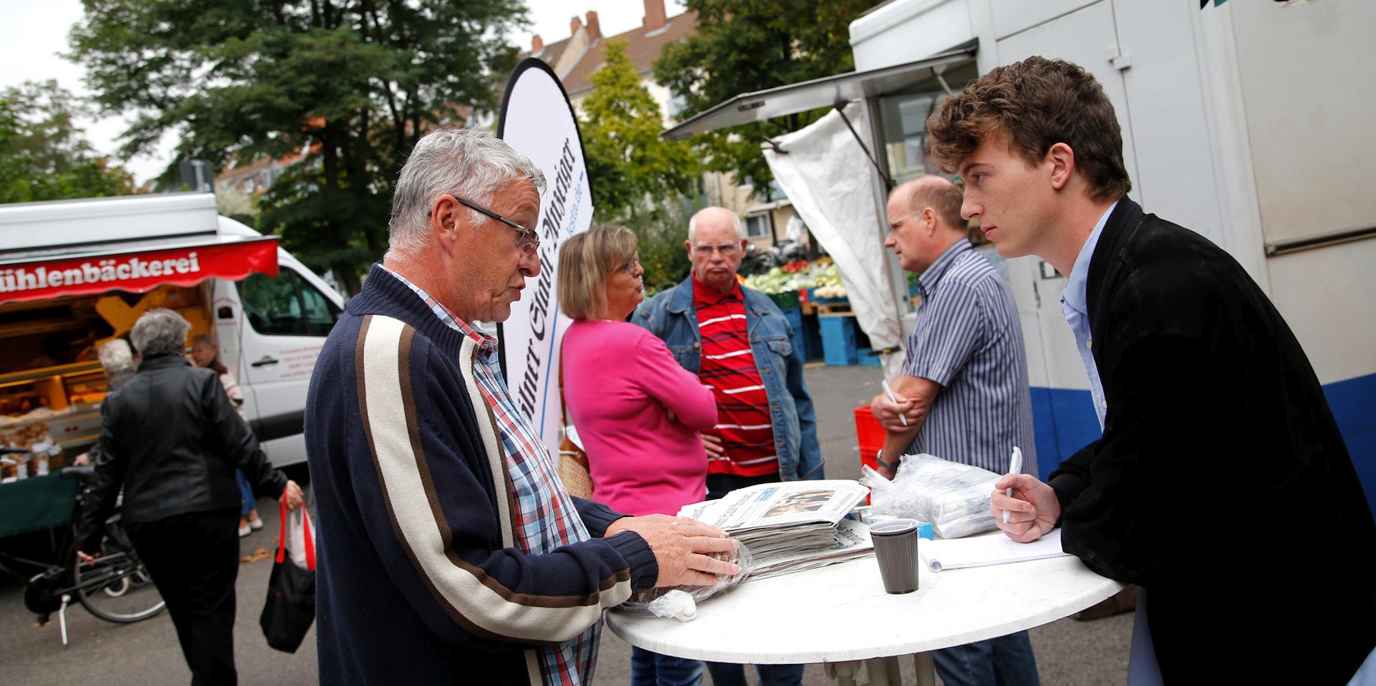 Mitarbeiter Norbert Ramme (l.) hat ein offenes Ohr für Marktbesucher.