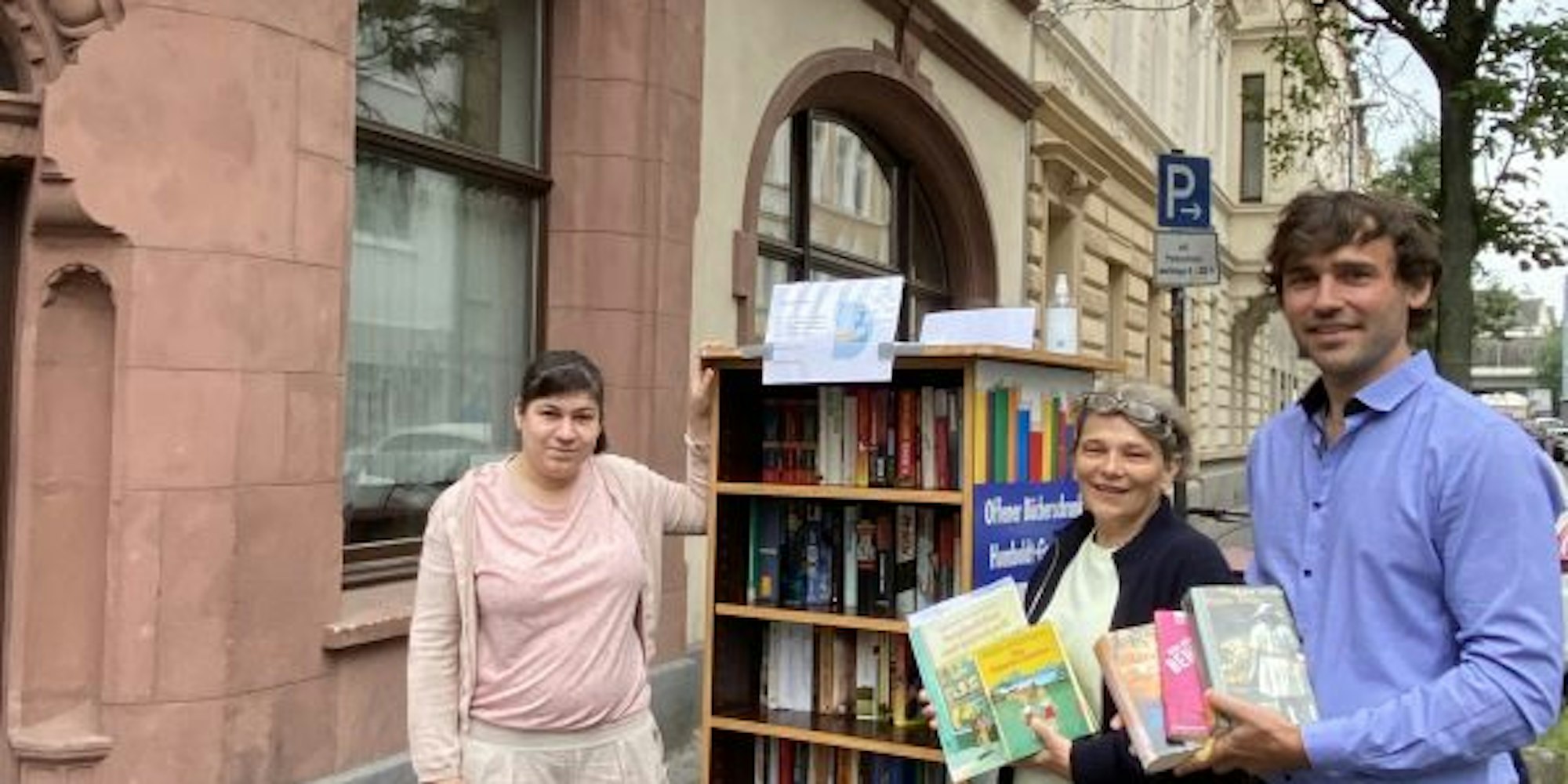 So weihten die beiden am Donnerstagmittag einen neuen Bücherschrank ein, der nun an der Ecke von Trimborn- und Antoniastraße – in zentrale Lage ganz in der Nähe der Haltestellen „Kalk Post“ – seinen Standort gefunden hat: Vor der Eingangstüre des ALV Arbeitnehmer Lohnsteuerhilfeverein.
