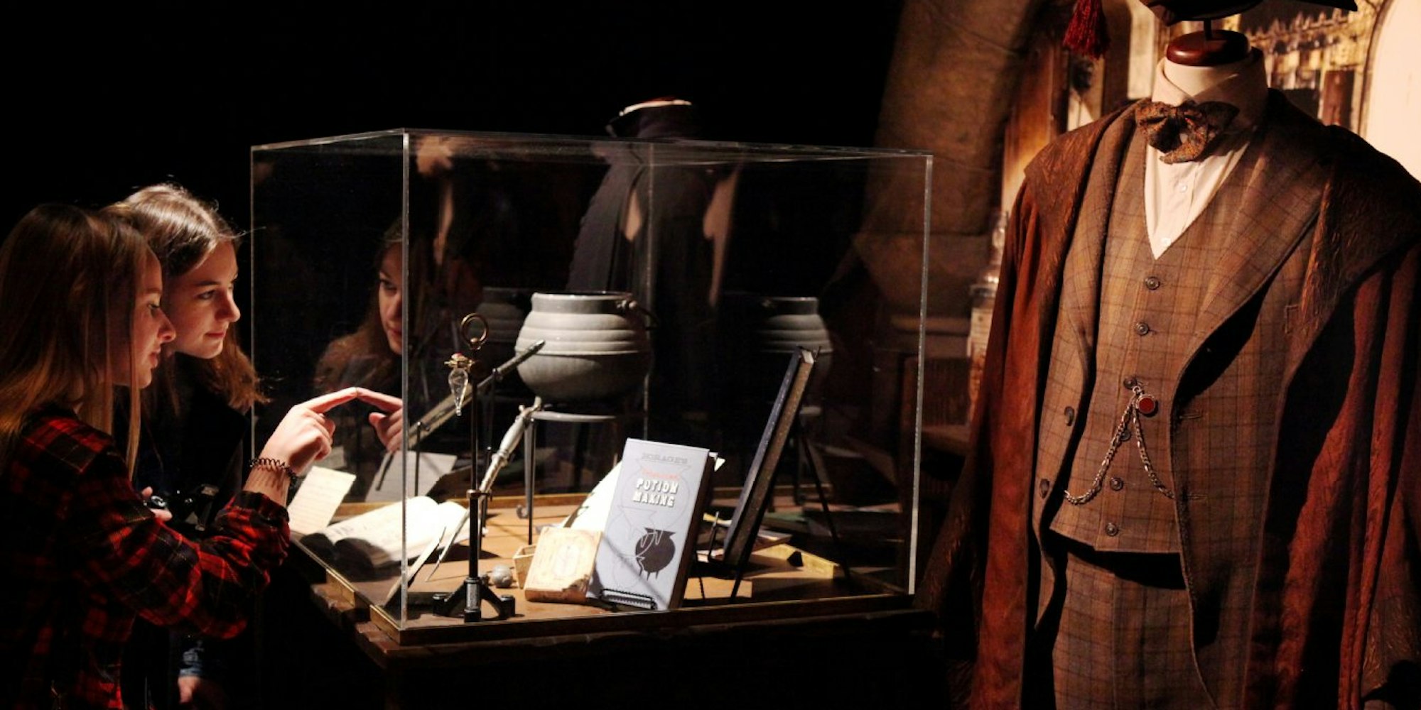 Die Harry-Potter-Ausstellung macht Station in Köln. Rund 400 Requisiten aus den Filmen sind zu sehen, viele verschlossen hinter Glas.