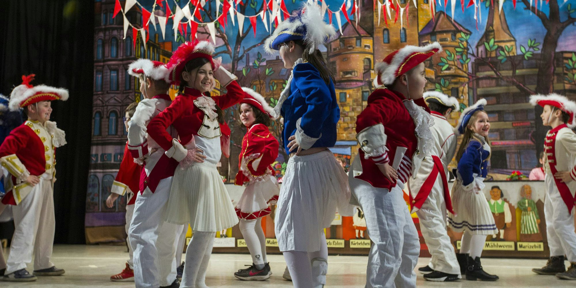Die Stimmung, jetzt schon auf dem Höhepunkt. „An der KGS Zugweg hat vieles Tradition“, sagt Schulleiterin Gebelein. Auch in diesem Jahr tanzen und wibbeln die kleinen Funken wieder als erste über die fantastisch bunt dekorierte Bühne. Die Klasse 2i von Konrektorin Susanne Schückens eröffnet diesmal das zweieinhalbstündige Sitzungsspektakel. Tänze zu kölschen Liedern (Klasse 2a) wechseln sich mit akrobatischen Vorführungen (Klasse 4a) ab. Die Mädchen und Jungen aus den Klassen 3a und 3b brauchen für ihre Darbietung keine Musik. Im Rhythmus schlagen sie mit ihren Besen auf den Bühnenboden. Stomp lässt grüßen.