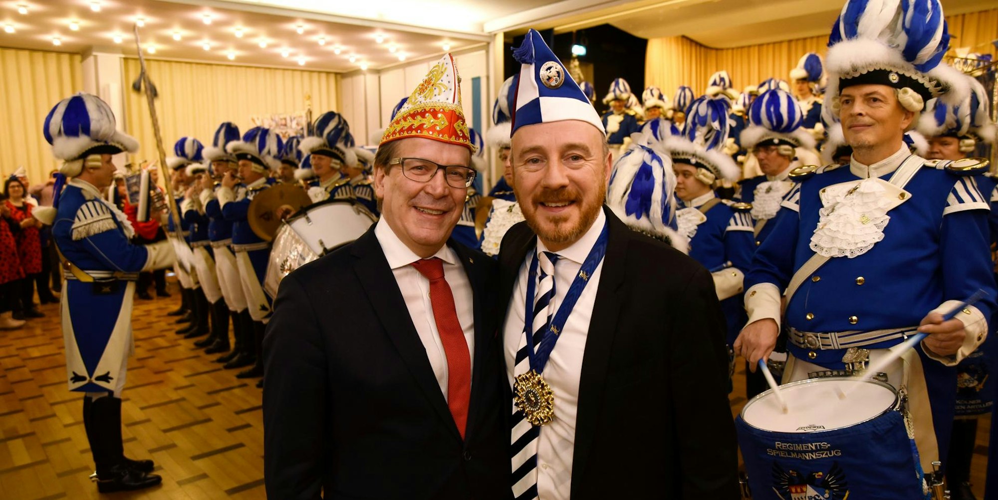 Mehr als 200 Gäste feierten mit den Kippa Köpp in der Synagoge an der Roonstraße. Unter ihnen Festkomiteepräsident Christoph Kuckelkorn, FK-Vizepräsidentin Christine Flock sowie das Jan-und-Griet-Paar des Reiter-Korps „Jan von Werth“ Dirk und Jackie Kenntner. Walter Schuhen mit der ungewöhnlichen Jobbeschreibung „Brauchtumsmanager“ überbrachte Grüße der Jüdischen Gemeinde Düsseldorf.