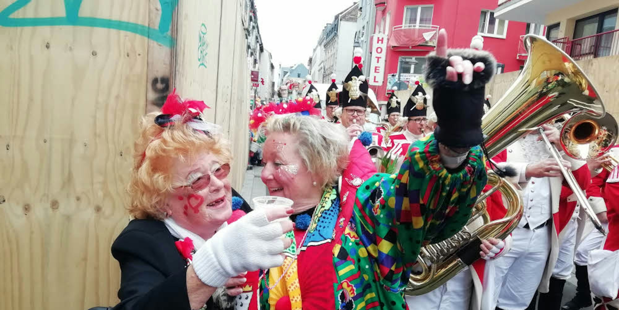 Karneval mit Mitte 80Drei Damen, die seit Jahrzehnten den Rosenmontagszug feiern