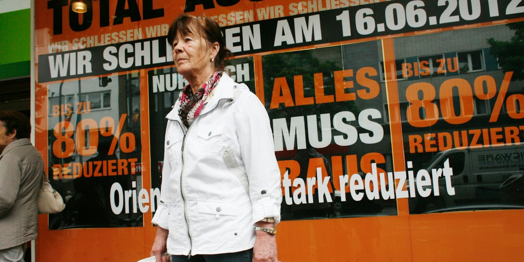 Die letzten Schnäppchen-Jäger an der Kalker Hauptstraße: Seit Tagen lockten Schilder mit Nachlässen von bis zu 80 Prozent.