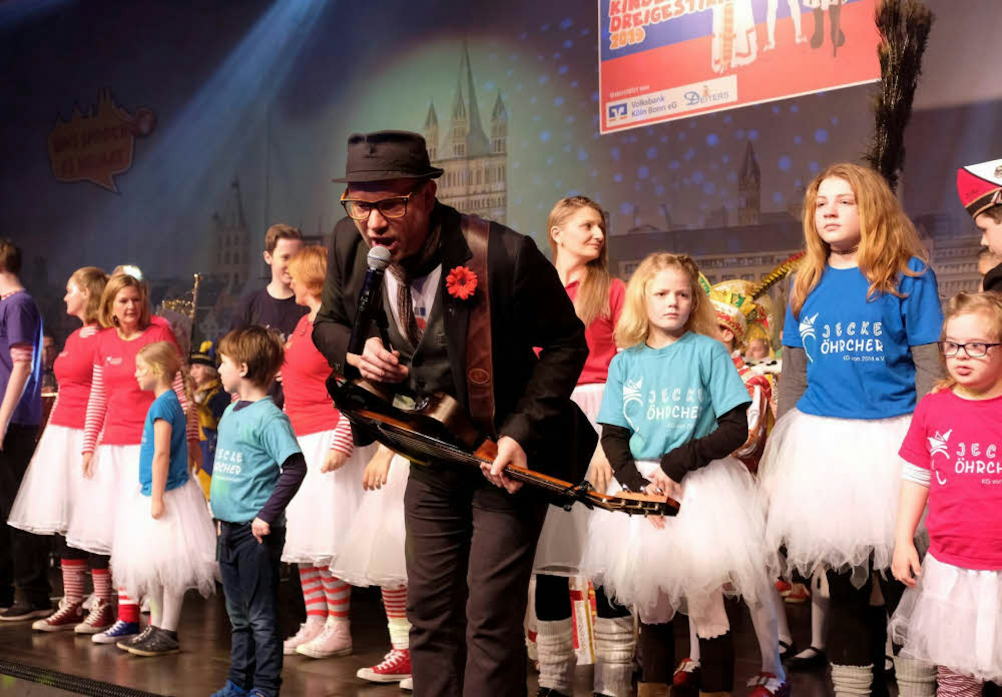 Gemeinsam mit dem Sänger Oly Blum präsentierte der Gebärdenchor des Vereins „Jecke Öhrcher“ das Lied „Luur hin, hür uns zo“ auf der Proklamation des Kinderdreigestirns.