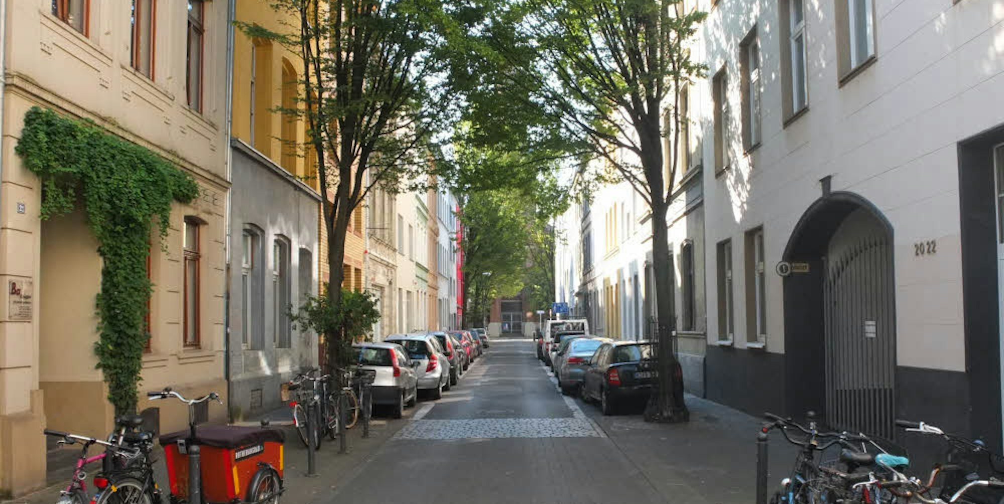 Der Autoverkehr verläuft auch nach der Umgestaltung in Einbahnstraßenrichtung von der Venloer zur Vogelsanger Straße. Radfahrer dürfen schon heute die Straße in beide Fahrtrichtungen benutzen.