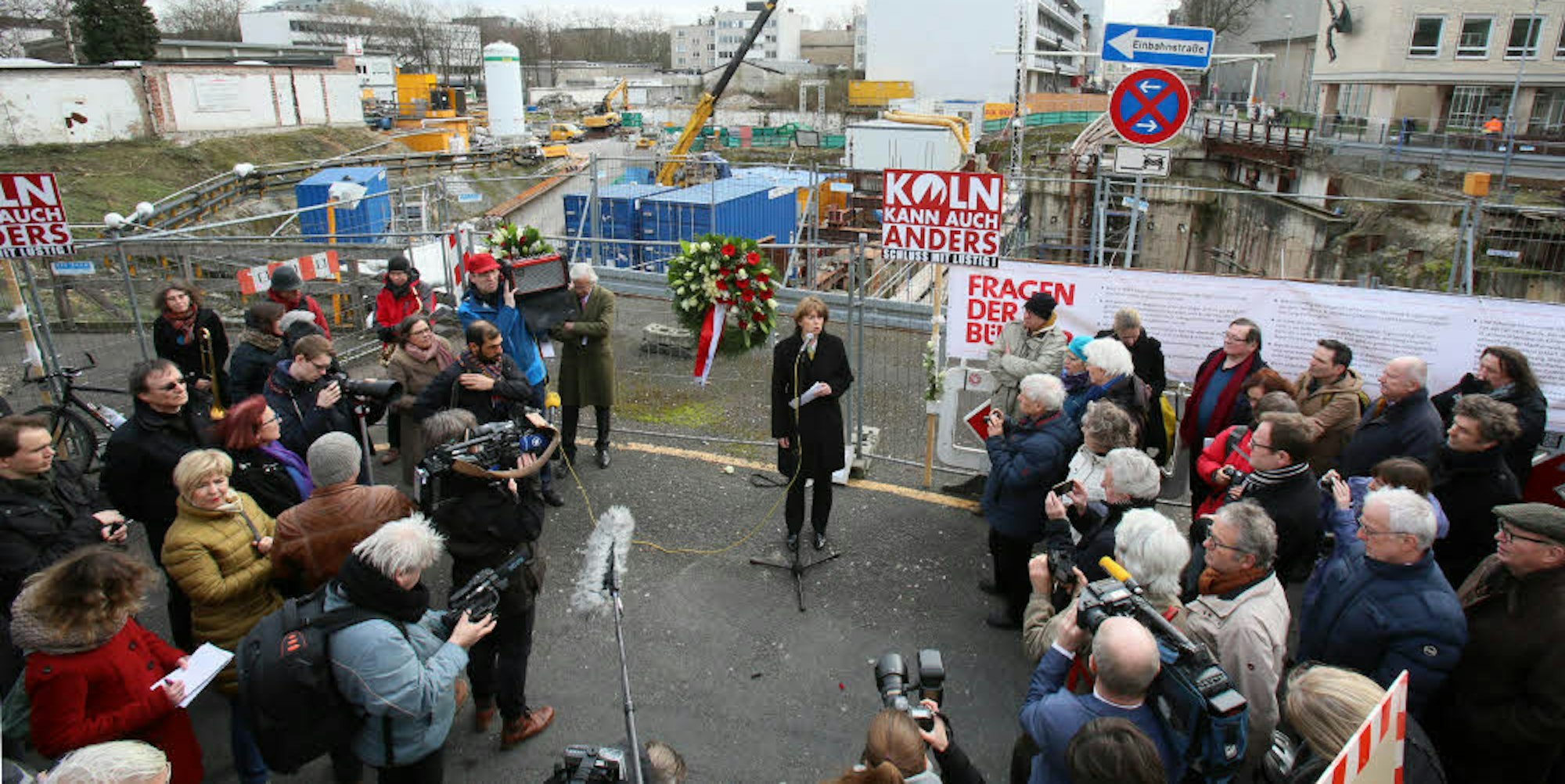 Fragen, deren Beantwortung die Initiatoren der jährlichen Gedenkveranstaltung – die Initiativen „Köln kann auch anders“ und „Archiv-Komplex“ – erneut anmahnten. Erstmals war mit Henriette Reker ein Kölner OB der Einladung zum Gedenken gefolgt. Ausdrücklich bezog Reker in ihrer Rede neben den beiden bei dem Einsturz ums Leben gekommenen jungen Männern auch jene Anwohnerin ein, die sich kurz danach das Leben nahm.