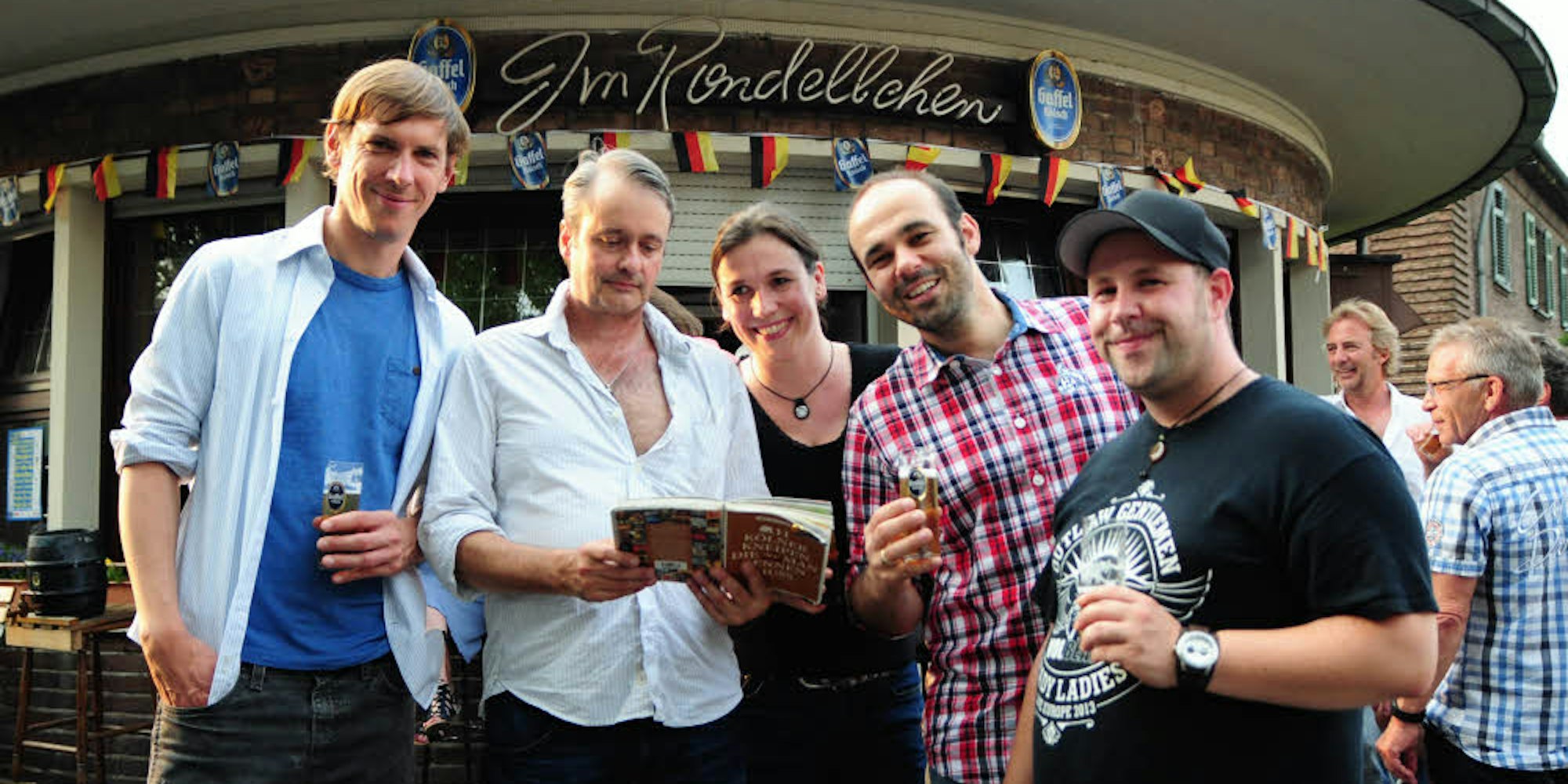 „Dass gerade unsere Kneipe die 111. ist, passt“, freut sich Wirt Wilfried Kelm. Auch die Autoren Imgrund und Schmülgen, der auch für den „Kölner Stadt-Anzeiger“ fotografiert, sowie einige Verlagsmitarbeiter waren ins Rondellchen gekommen, um die süffige Idee zu feiern und den Geschichten und Anekdoten der Kölsch-Freunde zu lauschen. Sie konnten zu jedem Lokal etwas erzählen.