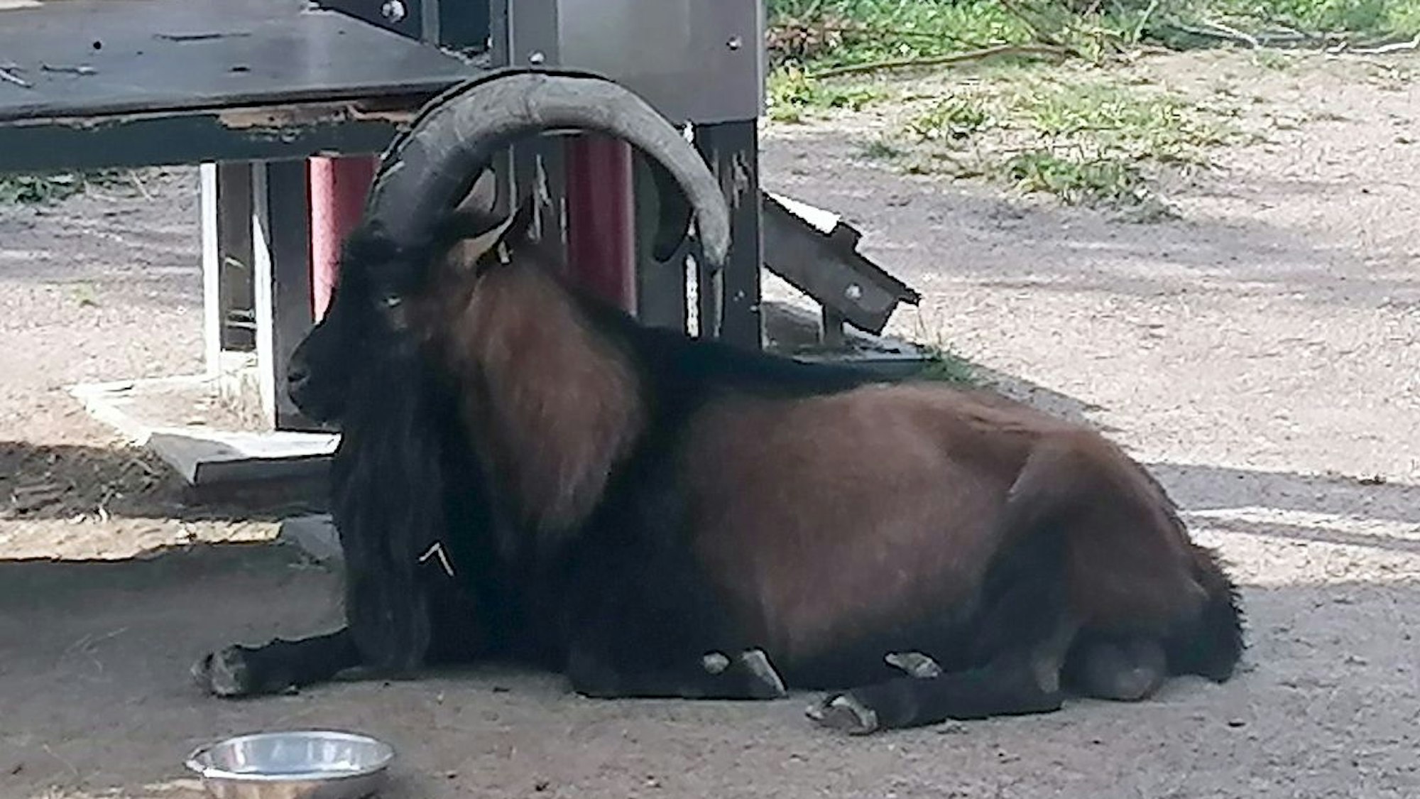 FC-Maskottchen Hennes IX. in seinem Revier.