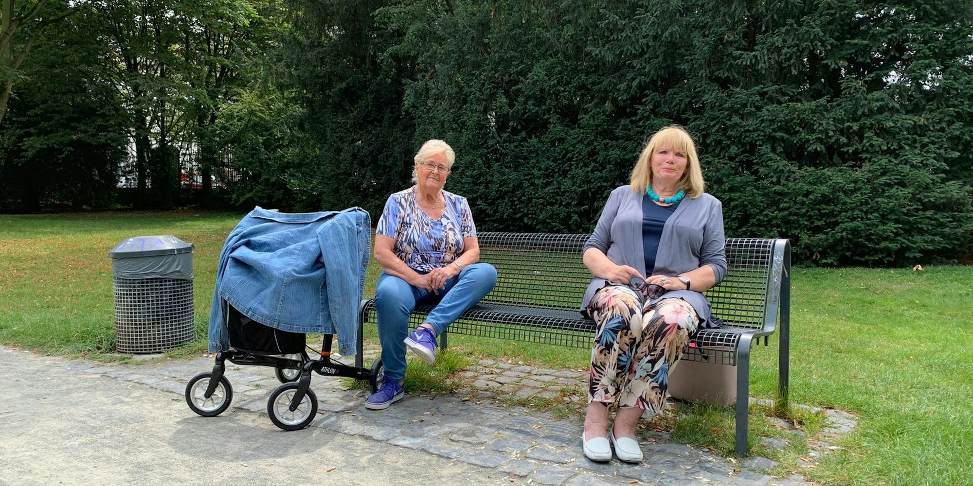 Köln – Der Platz ist ideal. Zwei Bänke, nah beieinander, aber nicht zu eng. Direkt unter hohen Bäumen, das dichte Blätterwerk spendet ausreichend Schatten. Anni Hansen und Gisela Rüter lieben den Pyramidenpark an der Gabelung von Gummersbacher und Deutz-Kalker-Straße in Deutz. Jetzt in Corona-Zeiten noch viel mehr als sonst. „Auf der Deutzer Freiheit ist zu viel los. Da rücken einem die Leute zu sehr auf die Pelle. Außerdem ist das ein ganzes Stück zu laufen“, sagt Gisela Rüter. „Ich bin mit meinem Ersatz-Mercedes ja auch nicht sehr schnell“, ergänzt Anni Hansen und versetzt ihrem Rollator einen kleinen Schubs mit dem Fuß.