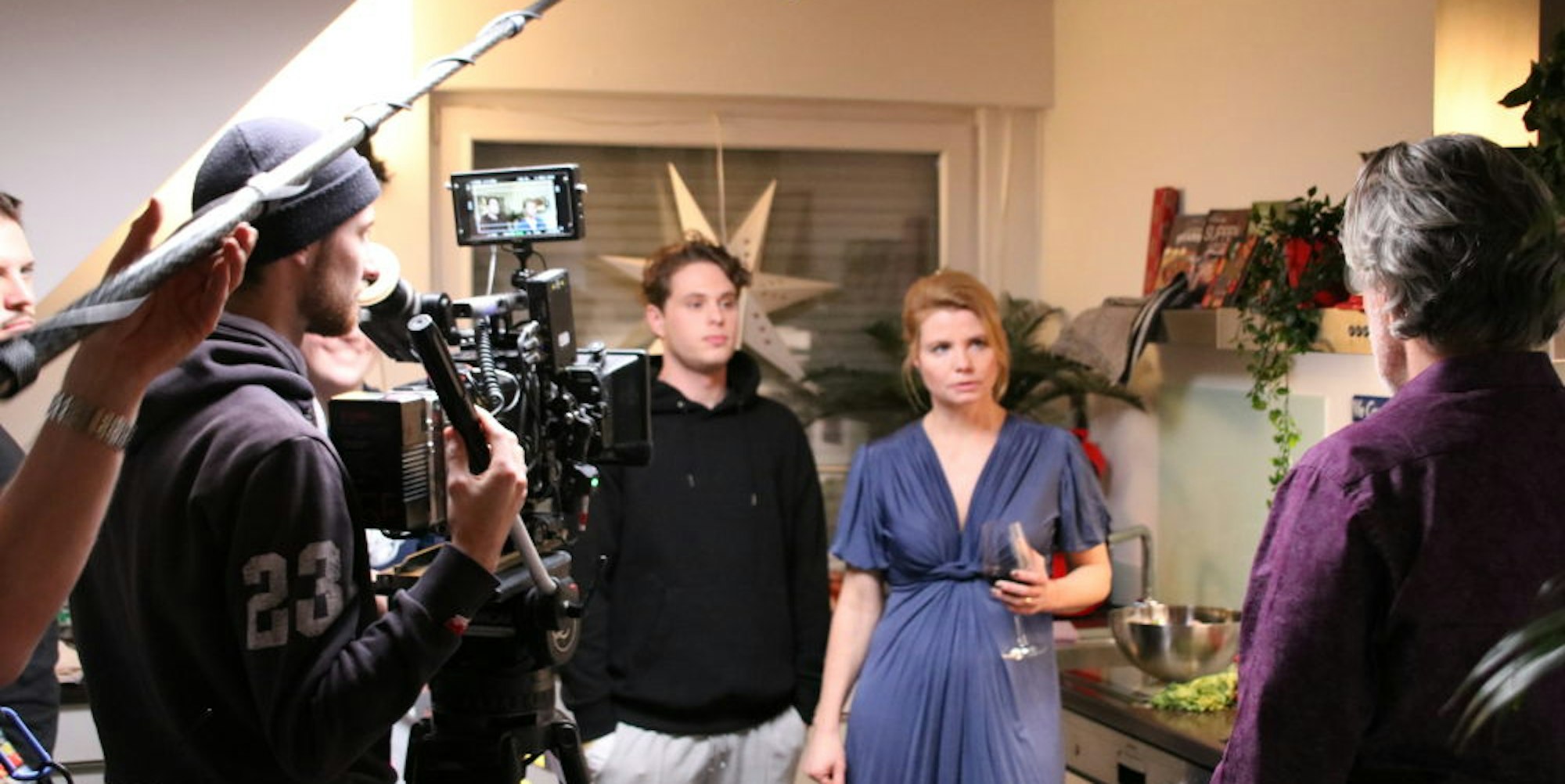 Die Schauspieler Annette Frier und Tobias Schäfer bei den Dreharbeiten