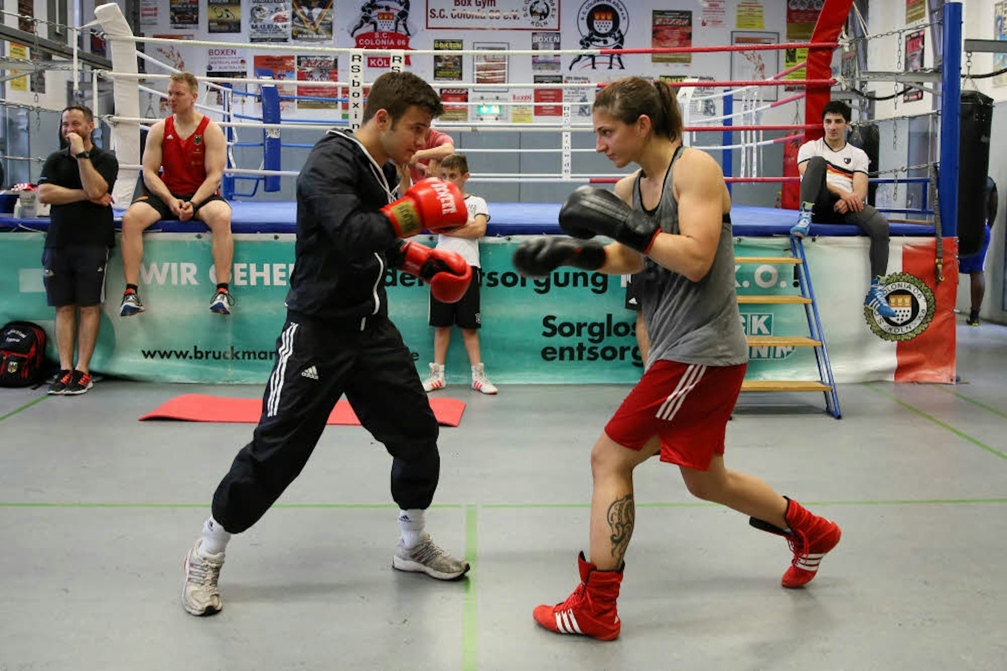 Köln – Die Fenster der Trainingsstätte des SC Colonia 06 am Olympiaweg in Müngersdorf lassen die Sonne rein, Boden, Ring, Wände, alles sehr hell, das Training ist durchgetaktet, keiner murrt, keiner flippt aus, keine Boxerklischees, nirgends; nur die Luft erfüllt die Erwartung: Mit jeder Minute, die die Athleten auf die Sandsäcke eindreschen, Schattenboxen, laufen, Liegestütze machen, sparren, säuert und gärt sie mehr.