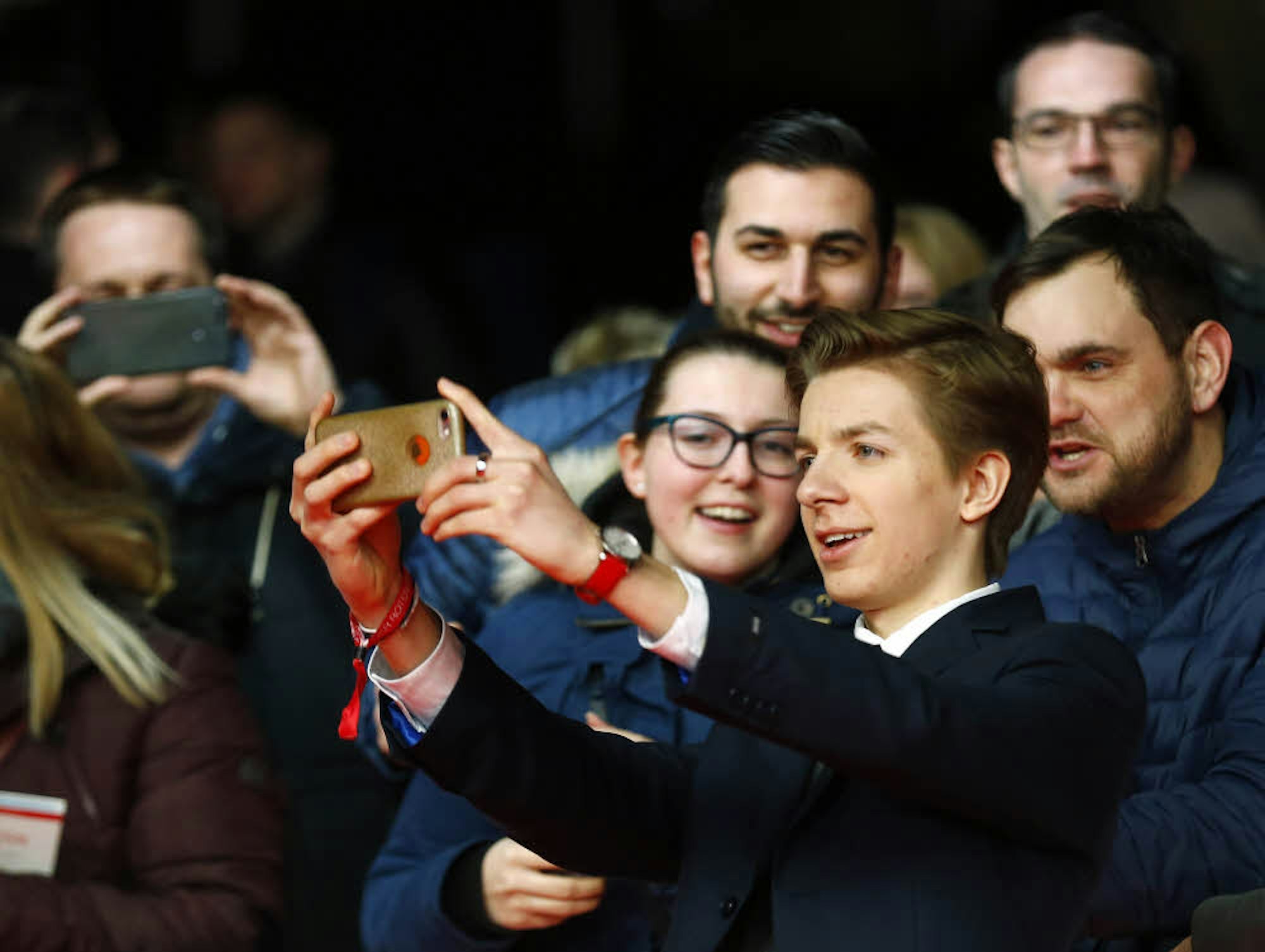 Schauspieler Nick Julius, im Film als Hugo zu sehen, macht Selfies mit seinen Fans