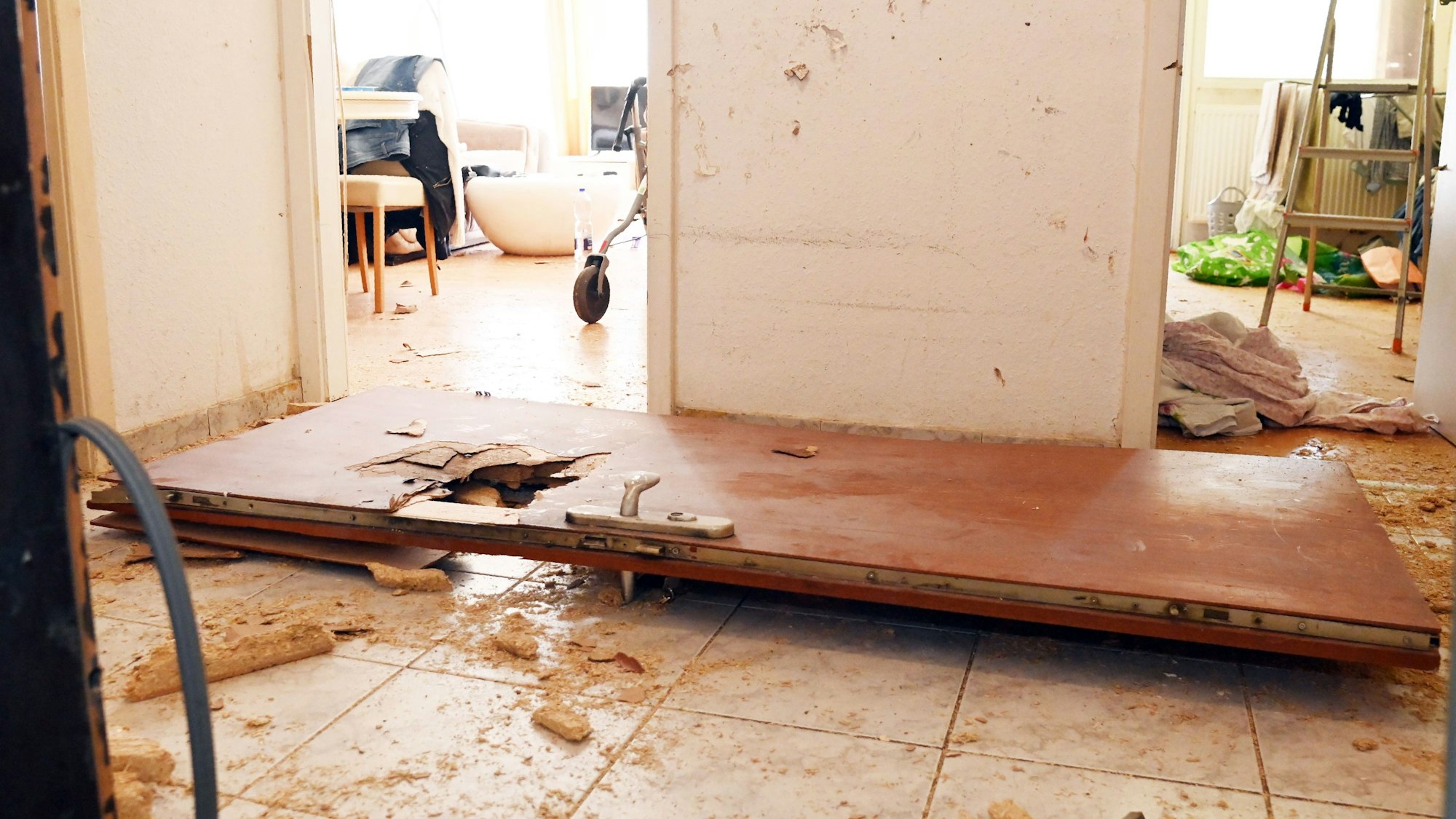 Bei einer Explosion in einem Mehrfamilienhaus in Meschenich wurde Ende Juli eine Wohnungstür zerstört.