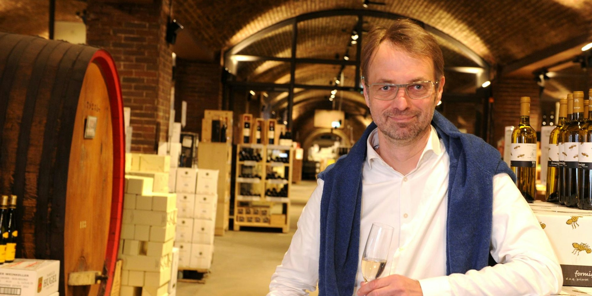 Andreas Brensing im 3000 Quadratmeter großen Gewölbe des Kölner Weinkellers.