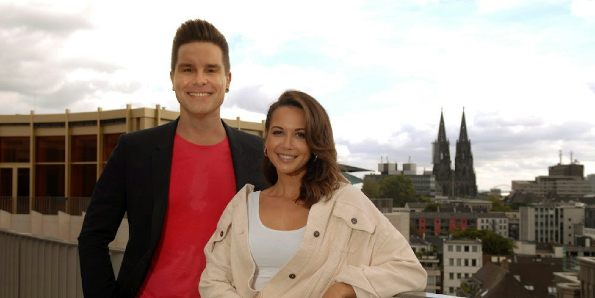 Eloy de Jong und Mandy Capristo auf der Terrasse der Monkey Bar – acht Stockwerke hoch über Köln.
