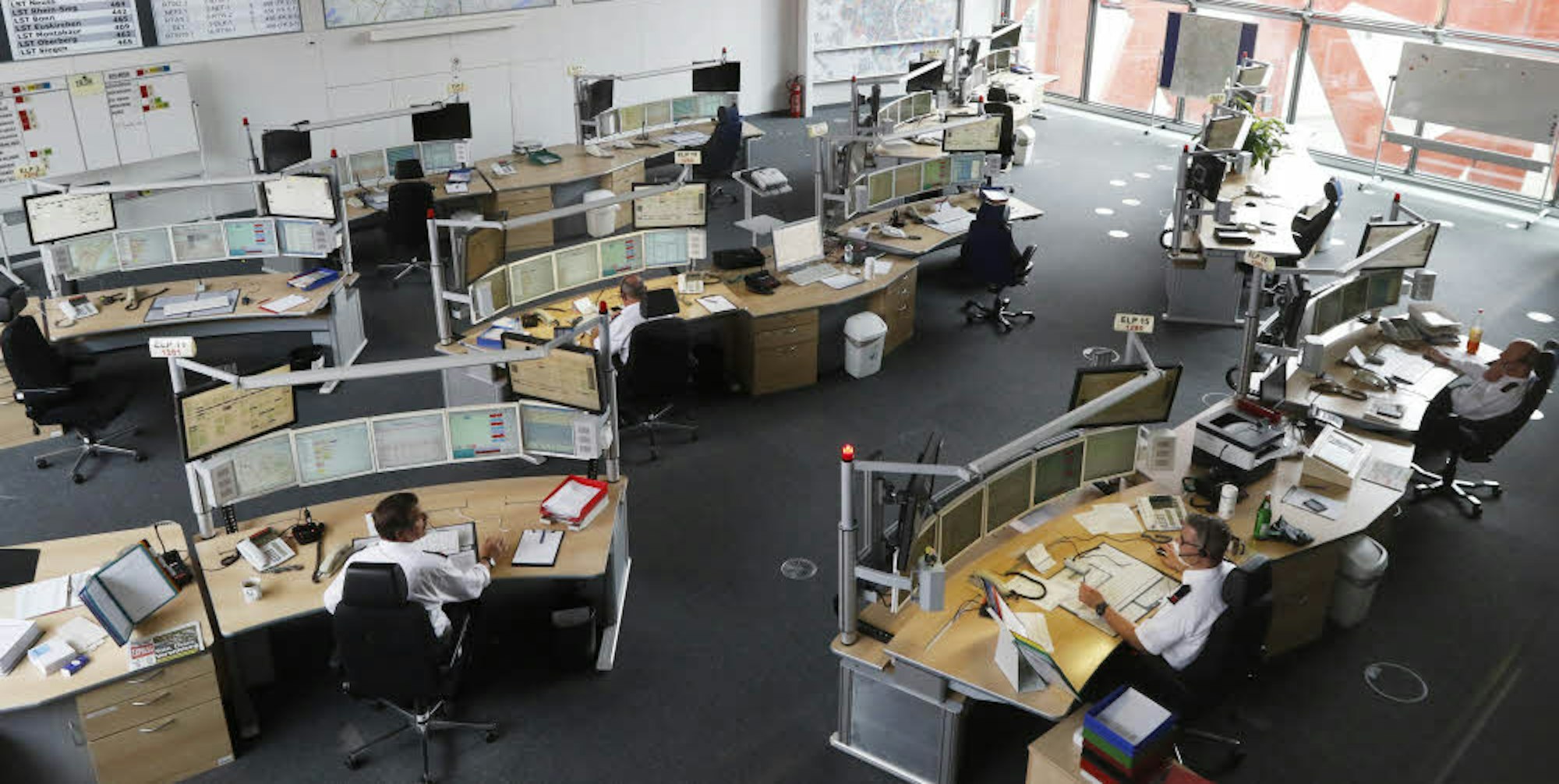 Blick in die Leitstelle der Berufsfeuerwehr in Weidenpesch: Hier kommen die Notrufe an.