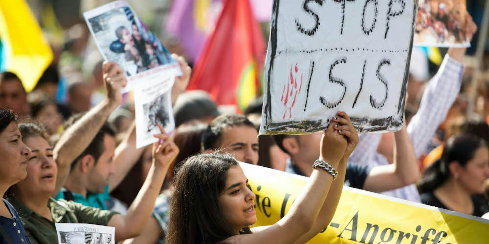 Muslime – hier Kurden bei einer Demonstration 2014 in Frankfurt – protestieren gegen islamistischen Terror.