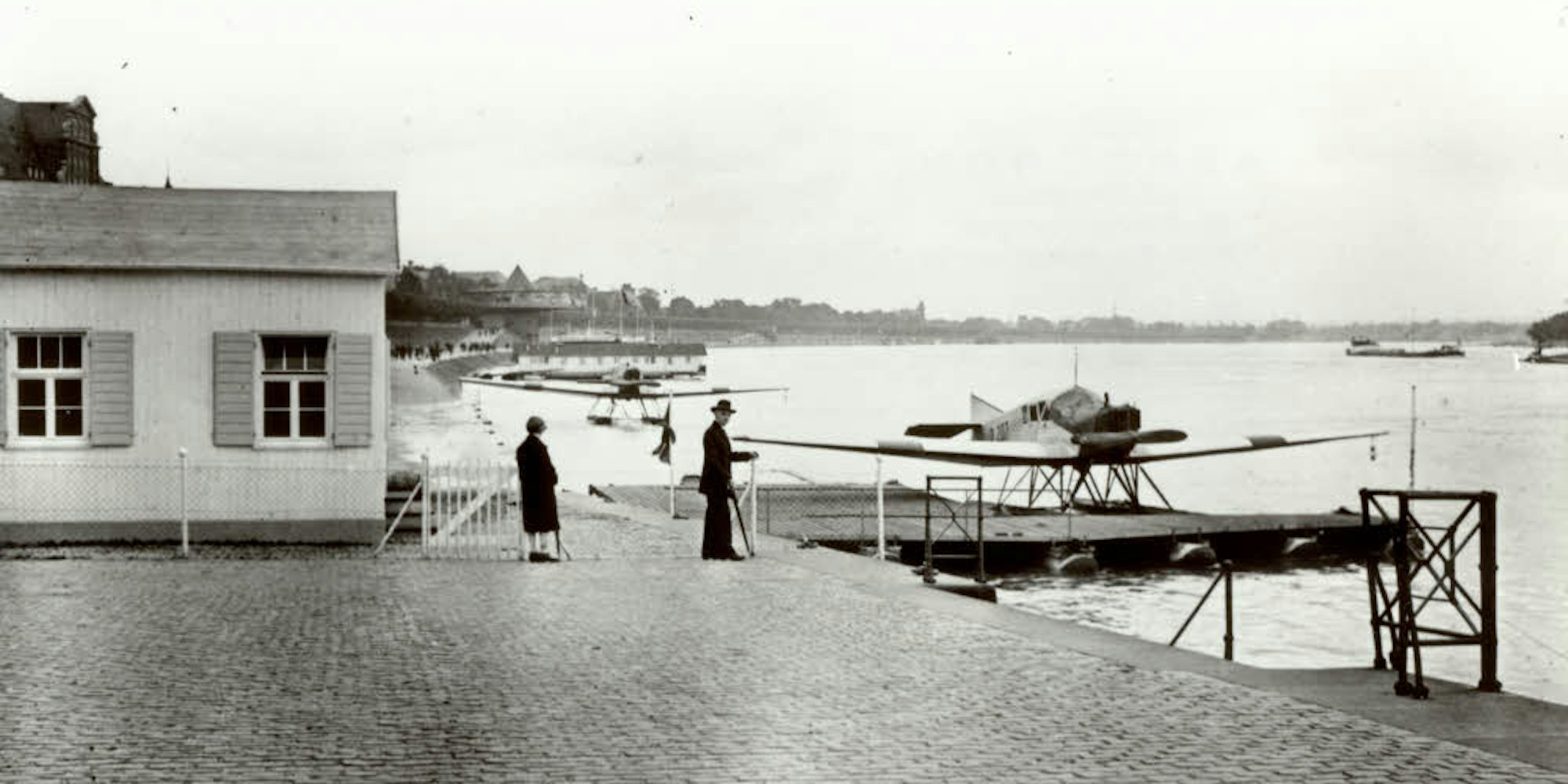 Köln – Wenn Leo Müller über die Hohenzollernbrücke zur Arbeit in Mülheim ging, passiert er auch den Wasserflugzeughafen am linken Rheinufer. Es muss ein besonderes Spektakel gewesen sein, die Flugzeuge vom Typ Junkers F 13 auf dem Rhein starten und landen zu sehen. Zumal Flugzeuge in den 1920-er Jahren überhaupt ein seltener Anblick waren.
