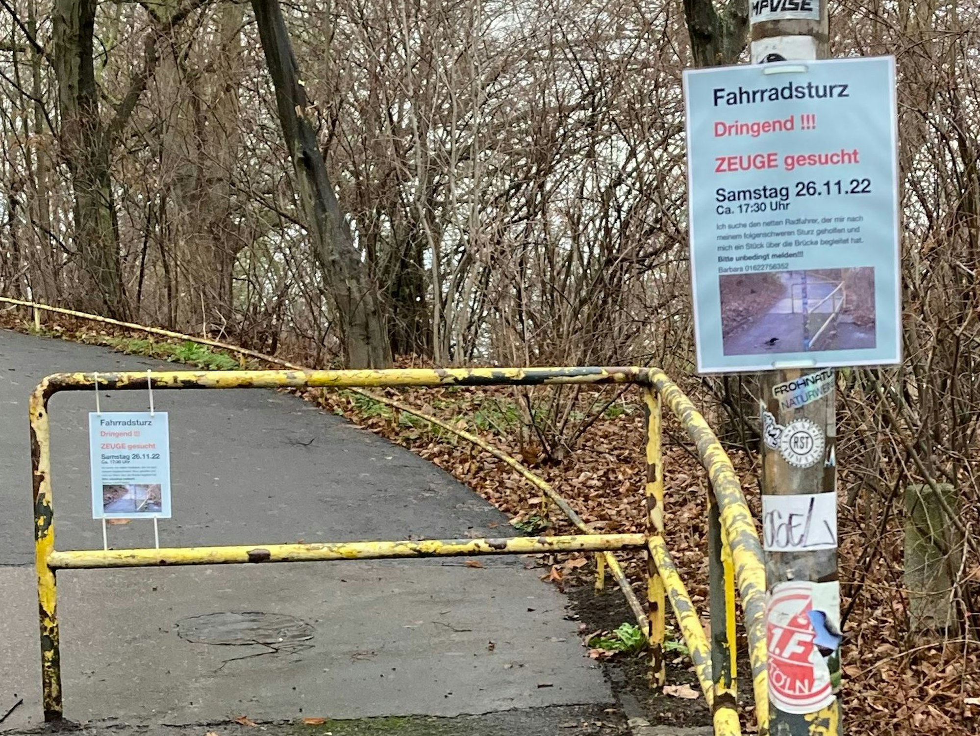 Mit diesem Aufruf suchte das Unfallopfer im November 2022 nach Zeugen. Der Schildermast ist inzwischen abgebaut.