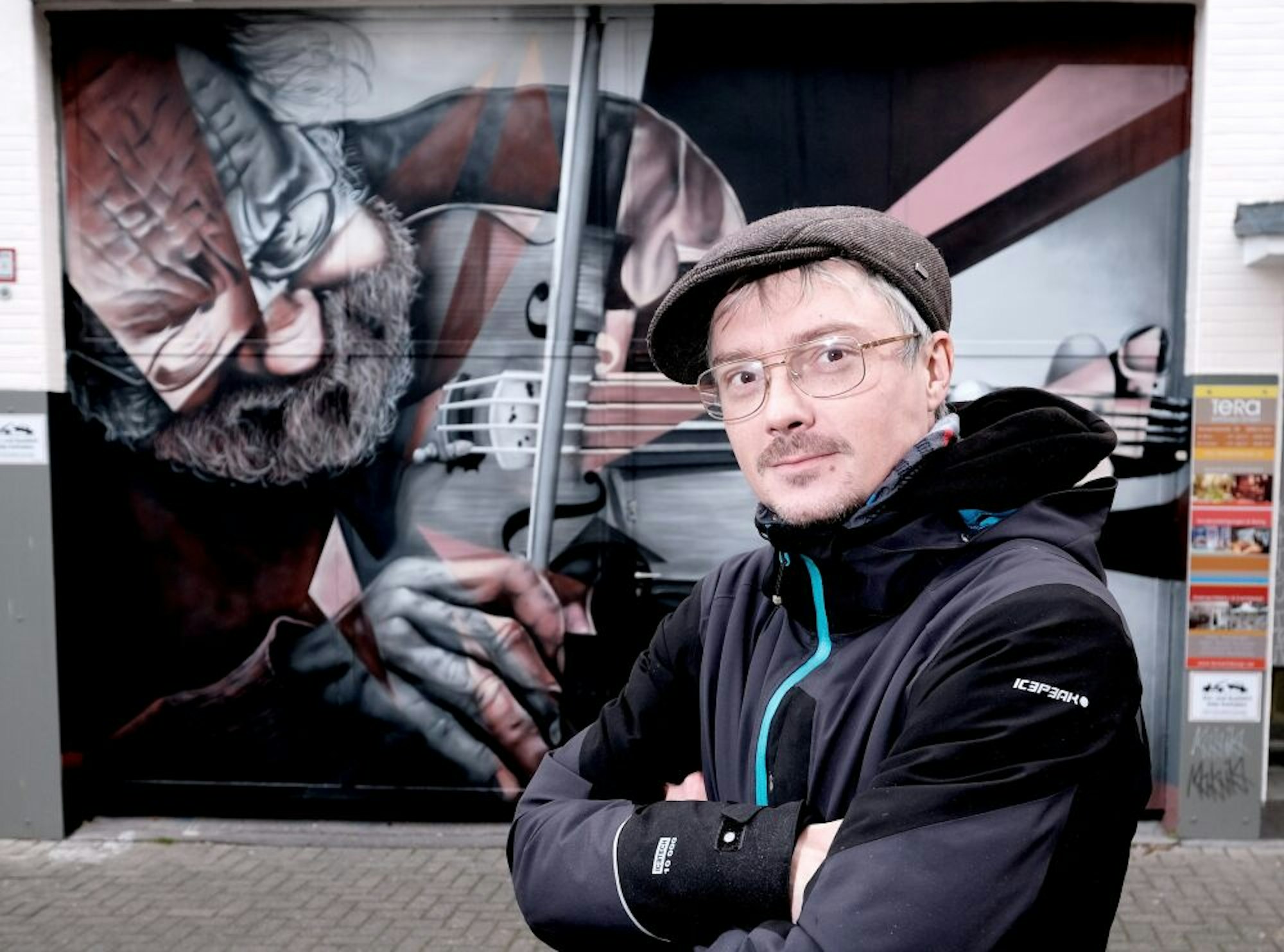 Das Porträt gesprayt hat Graffiti-Künstler Martin Scholz alias „Onkel Dose“. Dass Privatleute immer mehr auf den Geschmack kommen, ihre Hauswände oder Garagentore verschönern zu lassen, kommt dem 34-Jährigen zugute: Er könne sich die Jobs mittlerweile nach Gusto herauspicken. „Bei Klaus der Geiger war der Hausbesitzer sehr offen und ich konnte meine künstlerische Handschrift hinterlassen. Er hat ihn sich gewünscht, weil Klaus eine Kölner Ikone ist. Er wollte ihm ein Andenken schaffen“, erzählt Scholz.