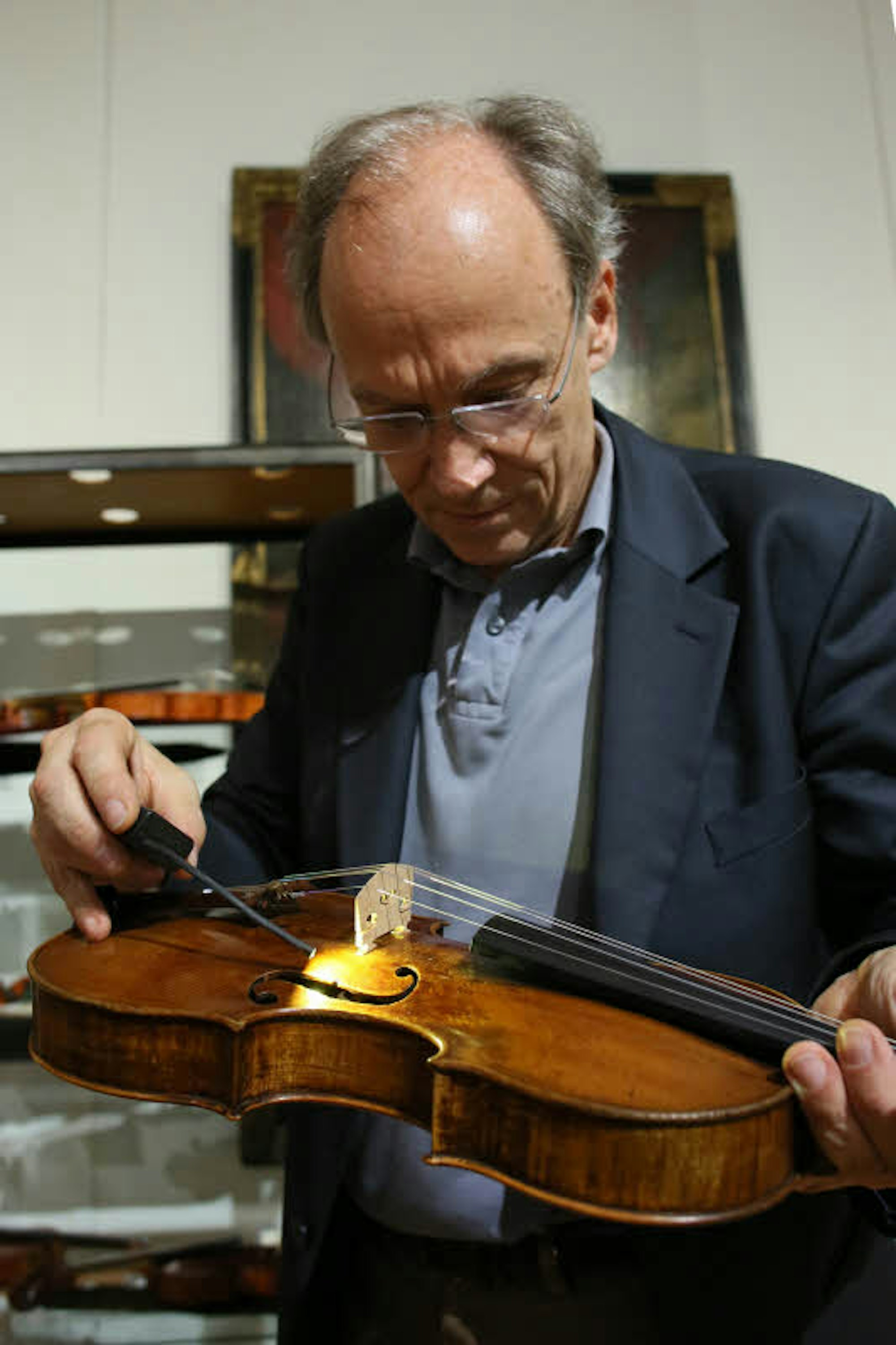 Im Stadtmuseum ist Geigenhändler Martin Swan aus Schottland aus dem Häuschen: „Für mich ist das die wichtigste Auktion seit zehn Jahren“, sagt er und begutachtet die Spitze eines Bogens mit der Lupe. Andreas Post, Händler und Restaurator aus Amsterdam, lobt ebenfalls die gute Qualität der Instrumente: „Aber das ist hier nicht die obere Preisklasse.“