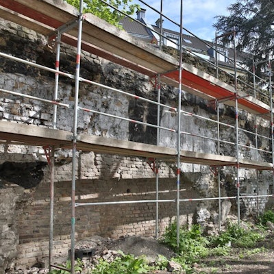 Links römische Stadtmauer, rechts Praetorium – und dazwischen die Heizungsanlage des Rathauses
