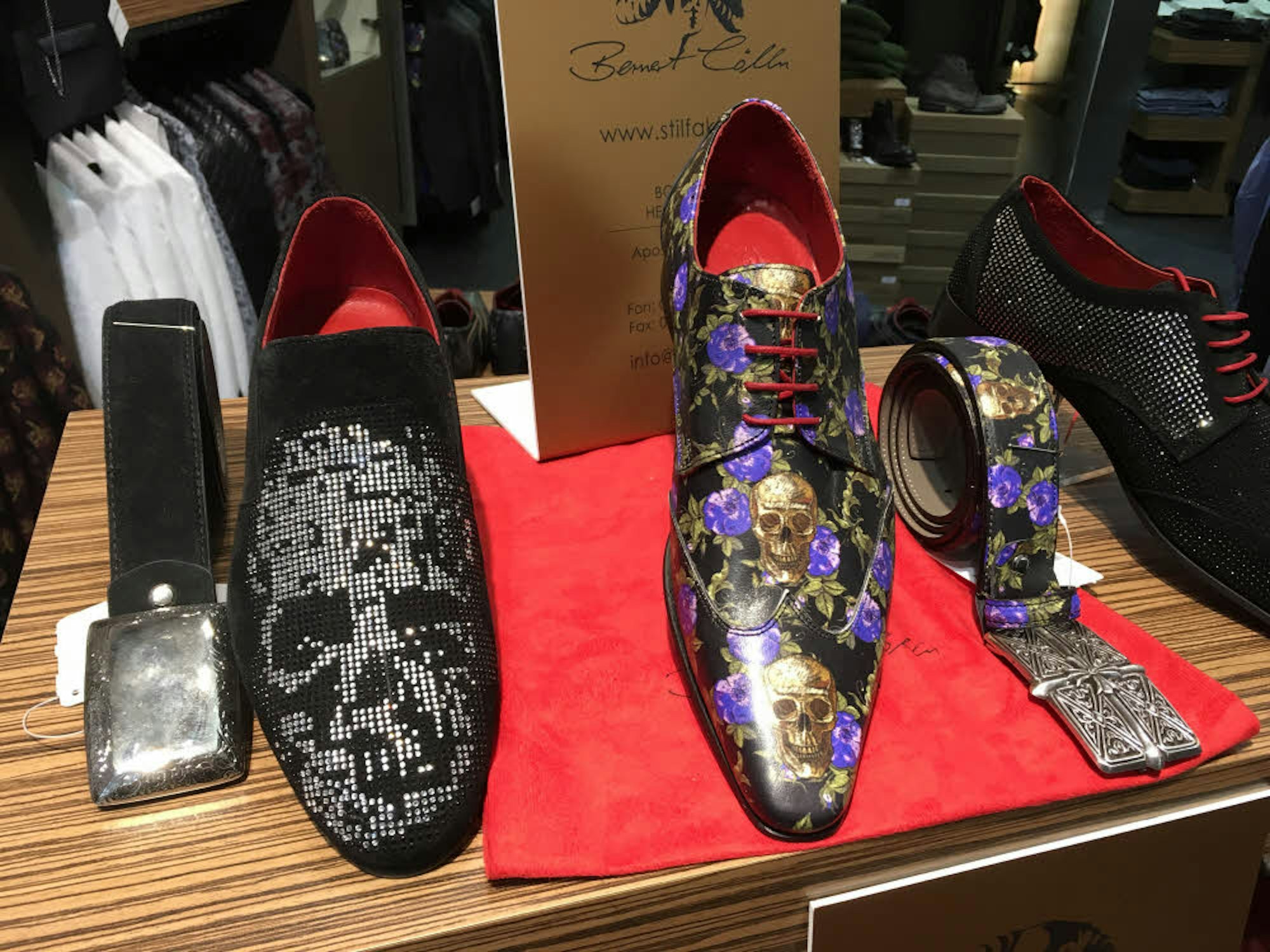 Zu behaupten, dass Bernert außergewöhnliche Männerklamotten vertreibt, wäre richtig und doch falsch. Die größte Leistung des 53-Jährigen besteht wahrscheinlich darin, dass selbst vermeintlich harte Jungs im Laden ihre Selbstdefinition korrigieren. Bestimmte Attribute wie Glitzersteine oder Blütendekor am Schuh – Dinge, die man gerade noch draußen auf der Straße als Weiberkram bezeichnet hätte, werden plötzlich mit anderen Augen gesehen.