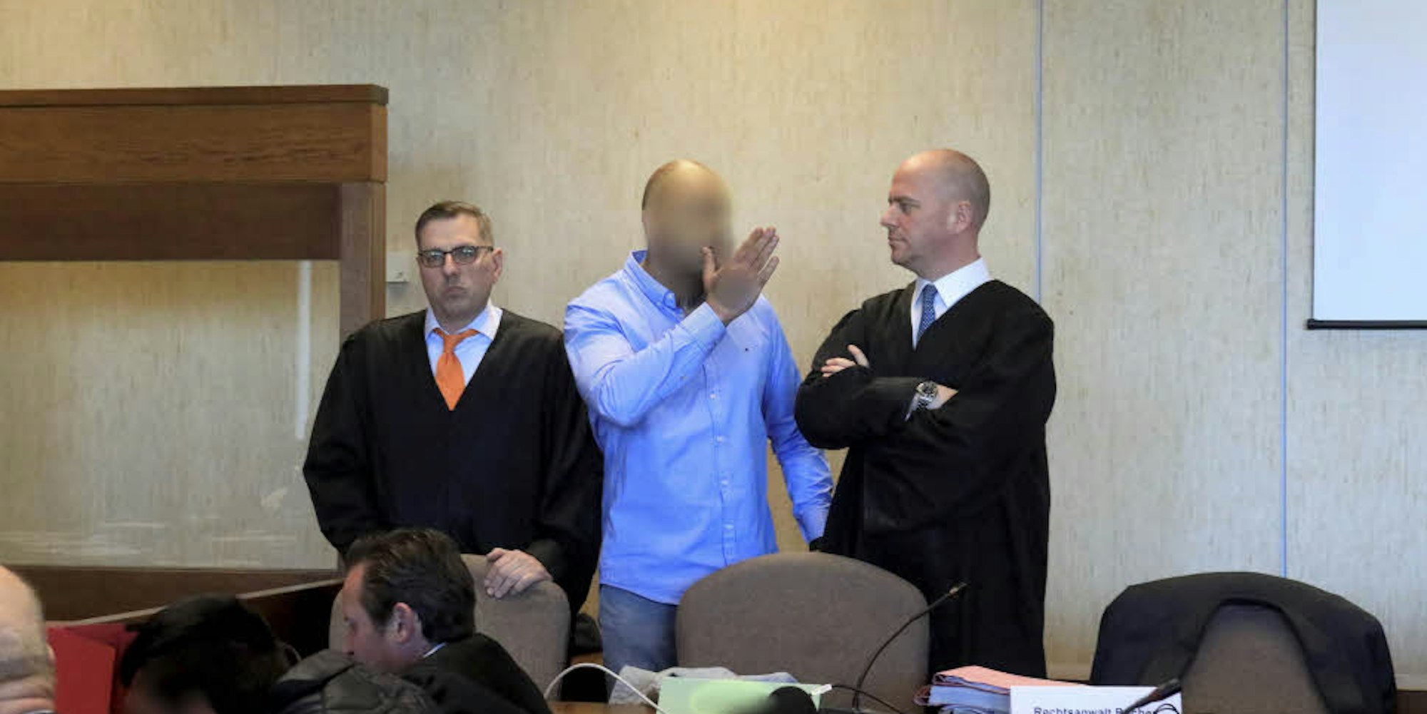 Serkan A. mit seinen Anwälten Martin Bücher (r.) und Carsten Rubarth (Archivfoto)