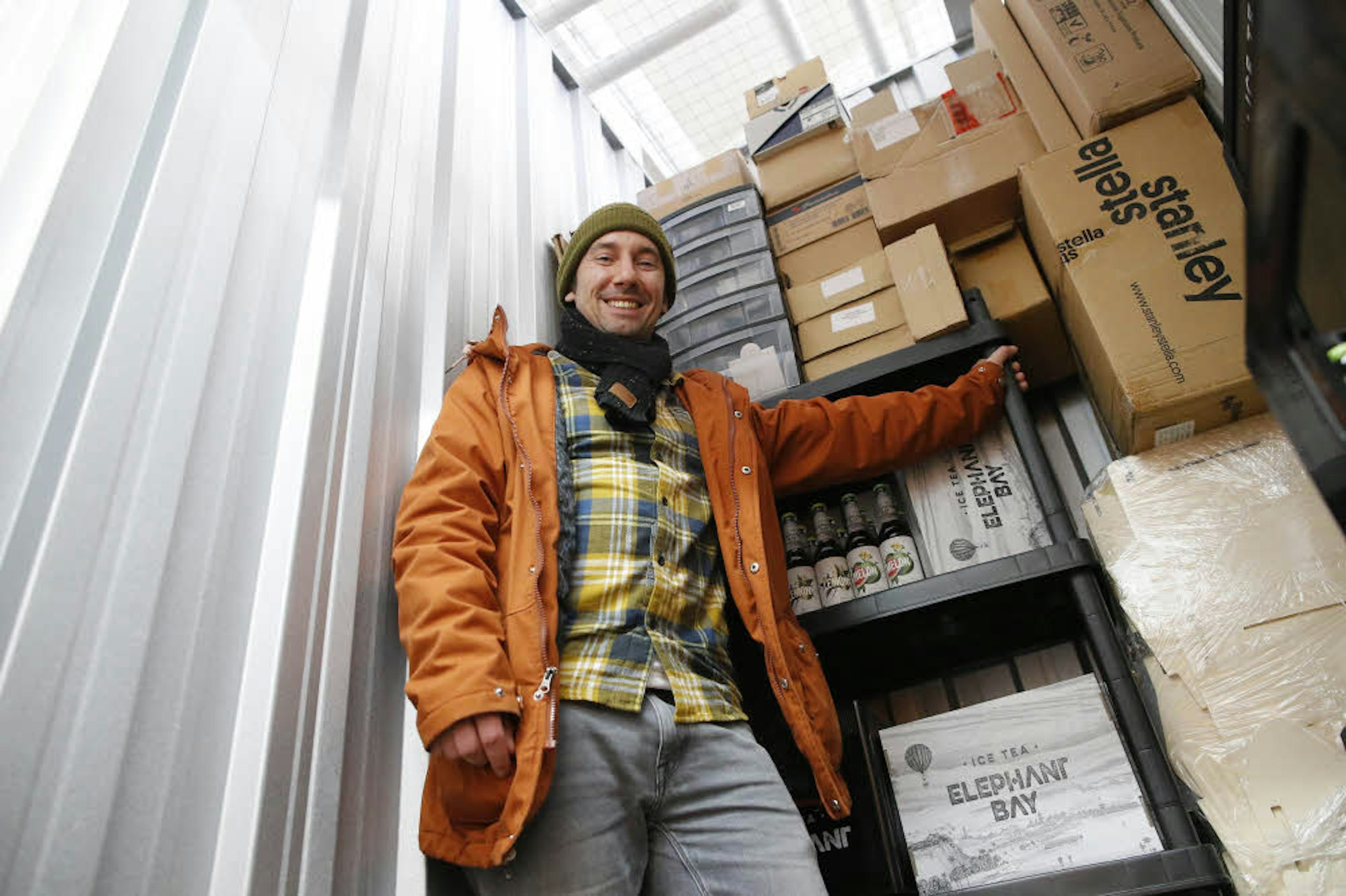 Torsten Tressel bewahrt im Ossendorfer Mietlager Bautrockner und Elektroheizgeräte auf, die er vermietet. Der Vorteil des Self-Storage-Konzepts sei für ihn die räumliche und zeitliche Flexibilität. Herkömmliche Lagerräume würden normalerweise für einen längeren Zeitraum vermietet. Hier könne er jederzeit kündigen und zudem die Größe seines Verschlags variieren. Ähnlich sieht es Jonathan G., der als Verkaufsleiter für einen Eistee-Hersteller arbeitet und im Ehrenfelder Selfstorage „platzschaffen.de“ in einer 1,5-Quadratmeter-Zelle bis unter die Decke Werbematerial stapelt. Schon öfter habe er den Lagerraum gewechselt, sagt der 38-Jährige: „Im Sommer brauche ich mehr Platz, im Winter weniger.“