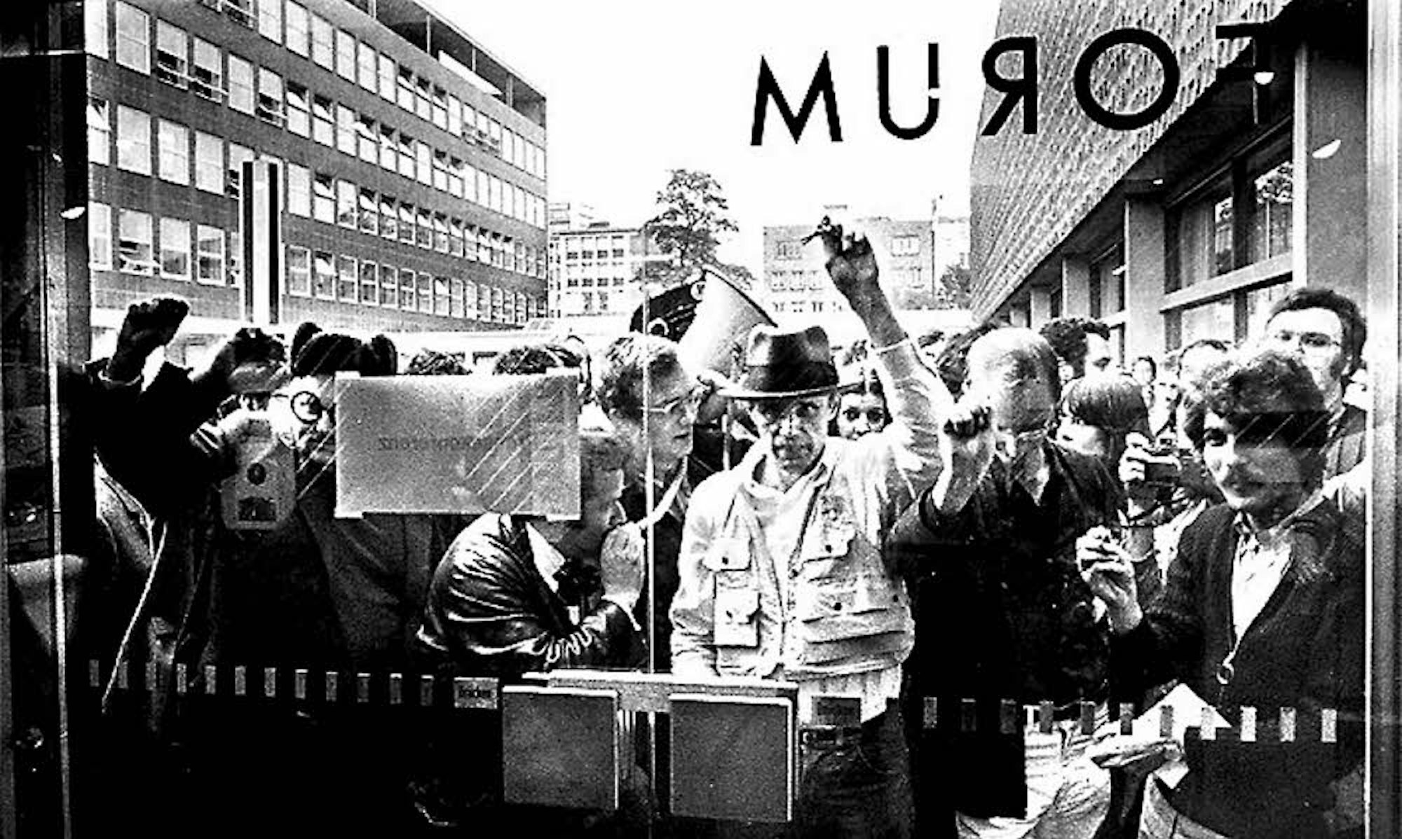Die Künstler Wolf Vostell (v. l.) Joseph Beuys und Klaus Staeck fordern 1970 Einlass in die Kunsthalle.