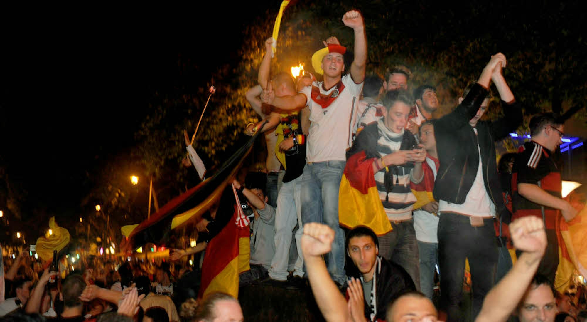 Seit vielen Jahren ist die Skulptur Treffpunkt feiernder Fußballfans auf dem Hohenzollernring.