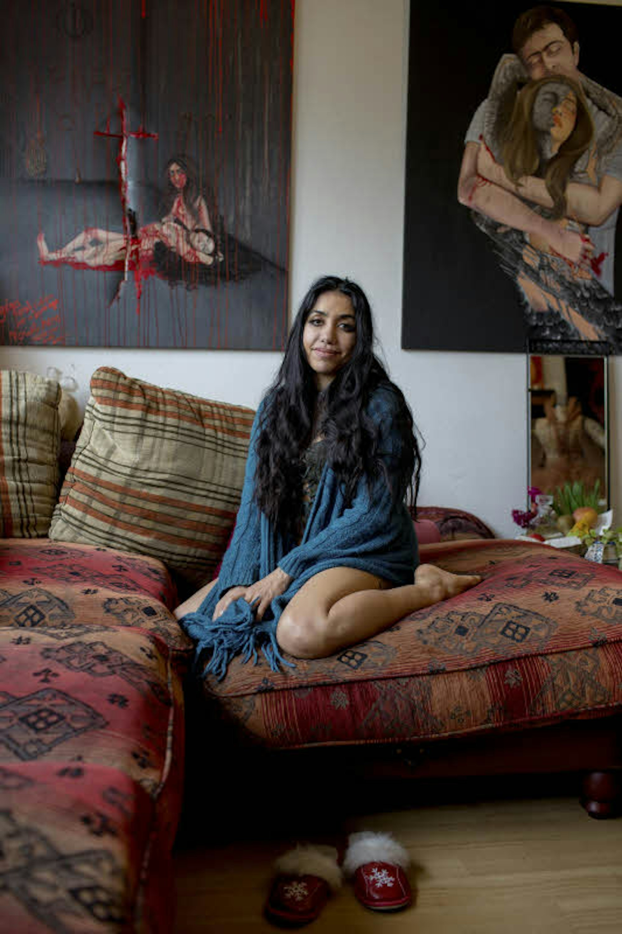 Vakilpours Leben wurde die Unschuld gewaltsam genommen. Ihre Oberfläche ist beinahe unversehrt geblieben, ihre Stirn ist glatt, der Ausdruck offen, melancholisch und verletzlich, man könnte sie viel jünger schätzen als 36, sie fühlt sich viel älter. Ihre Beine sind mit kleinen Narben übersät, ihre Augen wässrig, sie haben zu viel mitansehen müssen, ohne etwas ändern zu können. Vielleicht, sagt sie, sei ihre Kunst ein Kriegsschauplatz, vor dem sich die meisten lieber schützen. „Das ist mir egal.“ Sie sagt das oft: „Das ist mir egal.“