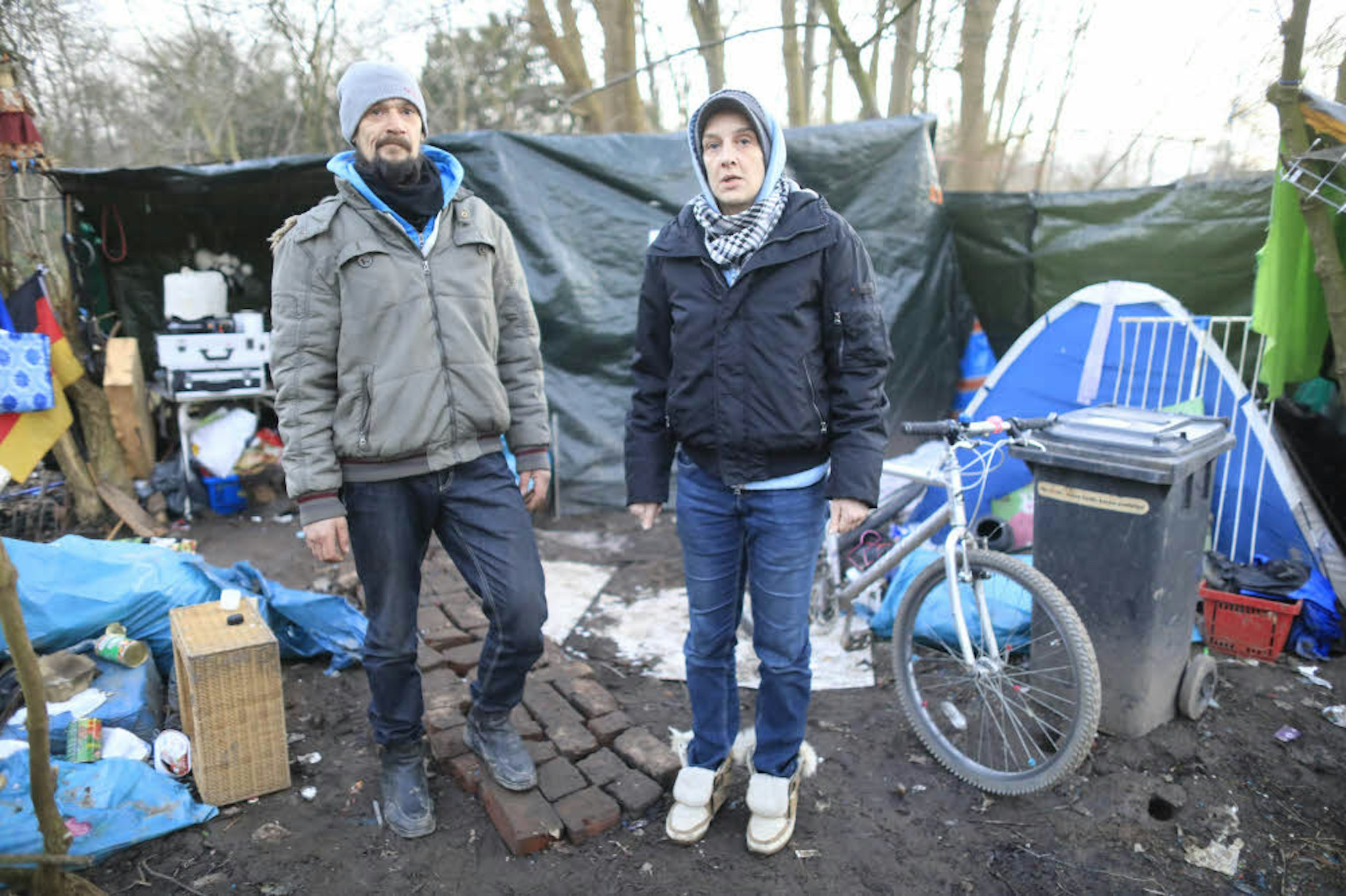Vor zwei Jahren schlugen sie ihre Zelte erstmals in einem Wald bei Merheim auf. Irgendwann kam die Polizei und schickte sie weg, in diesem Sommer zogen sie um in das Waldstück bei Höhenberg. Versteckt hinter Bäumen und Gestrüpp – und die olivgrüne Plane, die Andreas vor einigen Wochen über das Zelt gespannt hat, lässt die Behausung der beiden fast unsichtbar werden. Und doch haben Polizei und Ordnungsamt sie auch hier bereits gefunden – aber ließen sie diesmal bleiben.