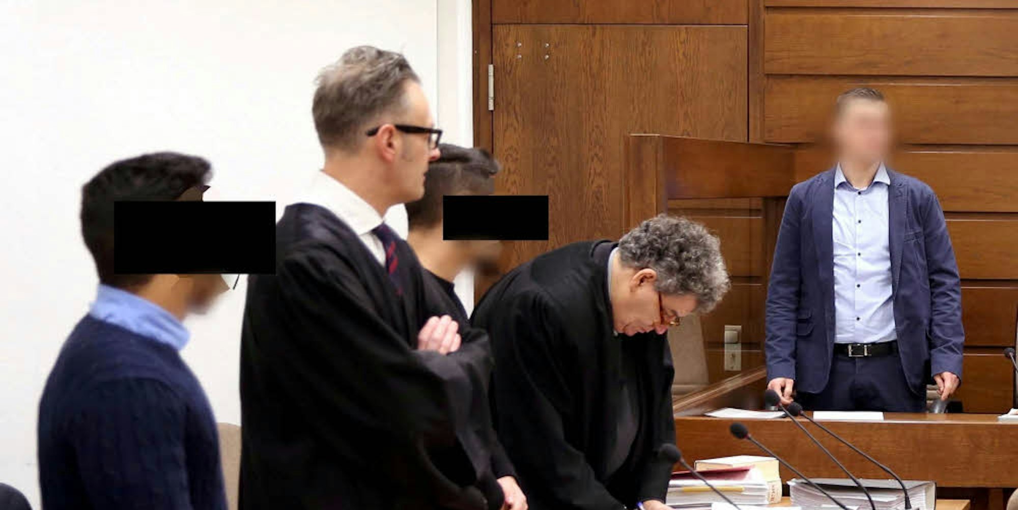 Der Schöffe (r.) könnte befangen sein, was den Prozess gegen Firat M. (l.) und Erkan F. (M.) platzen lassen würde.
