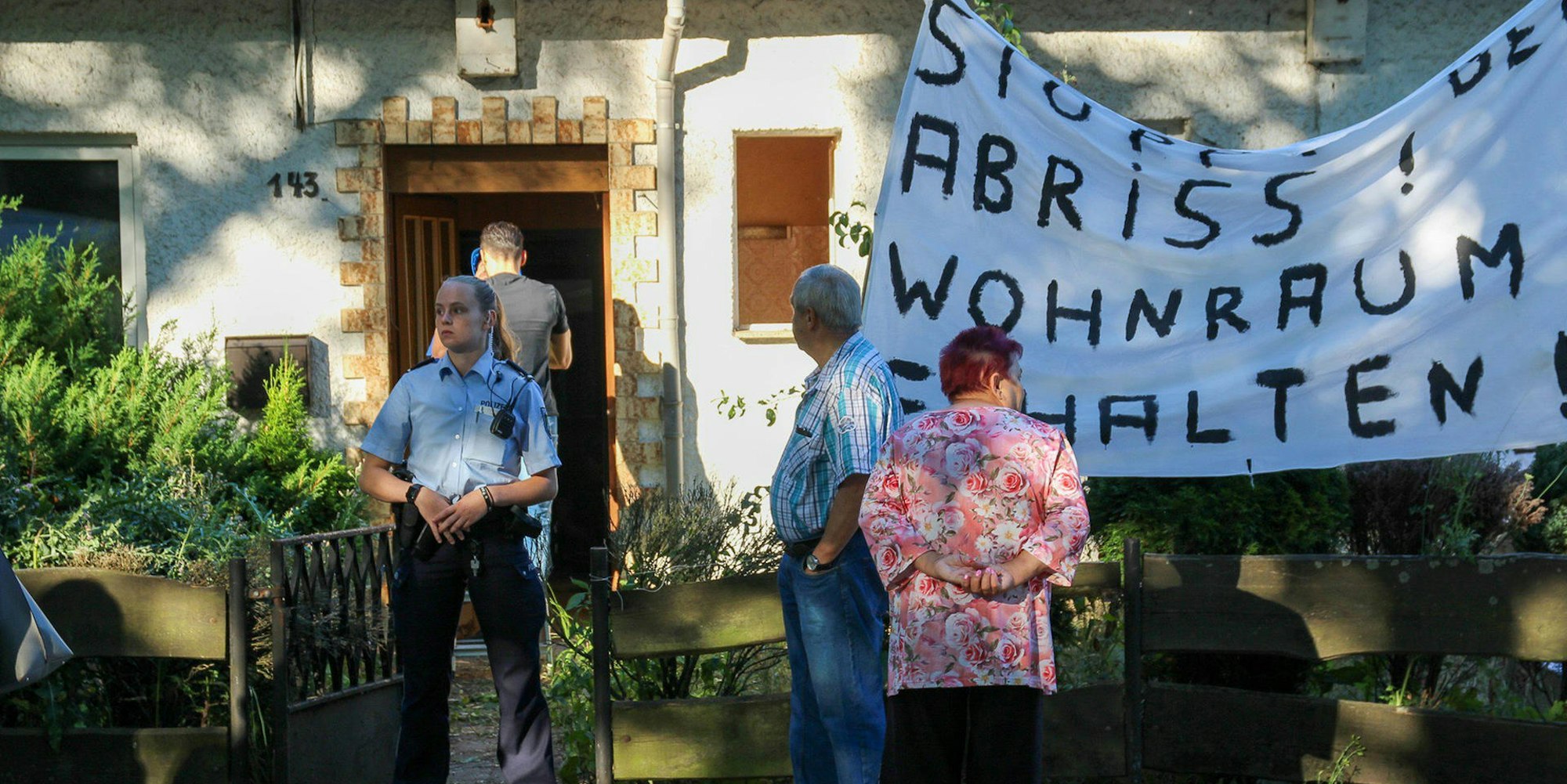 Das war in den vergangenen Jahren nicht so. Trotz Wohnungsnot riss die Stadt in Stammheim Häuser ab – gegen den Willen der Menschen, die in der Siedlung wohnen. Die Siedlung sollte einer Grünfläche weichen. Die Kölner Anwältin Petra Lenz-Voß hat das in einem Gutachten als Verstoß der Stadt gegen ihre eigene Wohnraumsatzung kritisiert, weil sie vorhandenen Wohnraum vernichte.