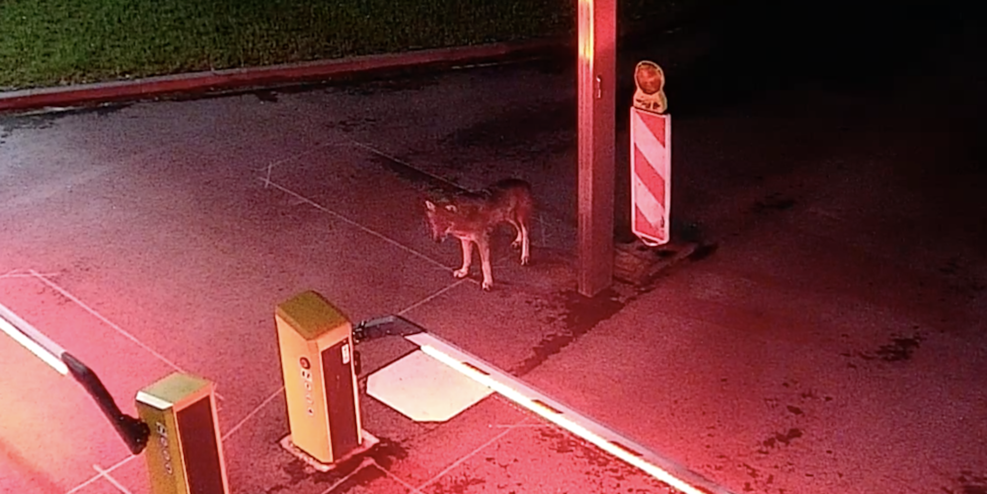 Der von einer Überwachungskamera der Rhein-Energie aufgenommene Wolf.
