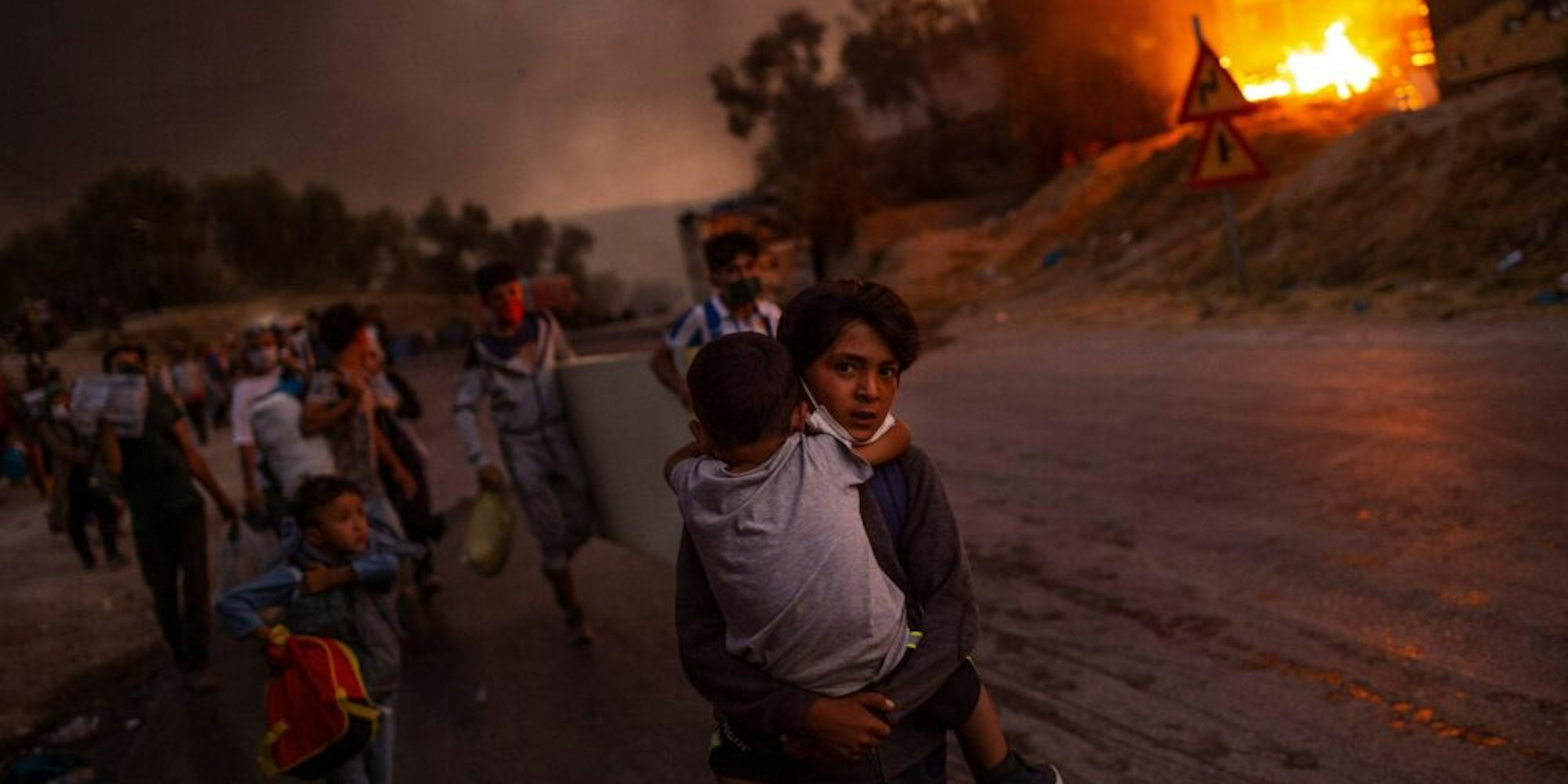 Das „Unicef-Foto des Jahres“ wurde am 9. September 2020 an einer Straße zum Flüchtlingslager Moria auf der griechischen Insel Lesbos aufgenommen.
