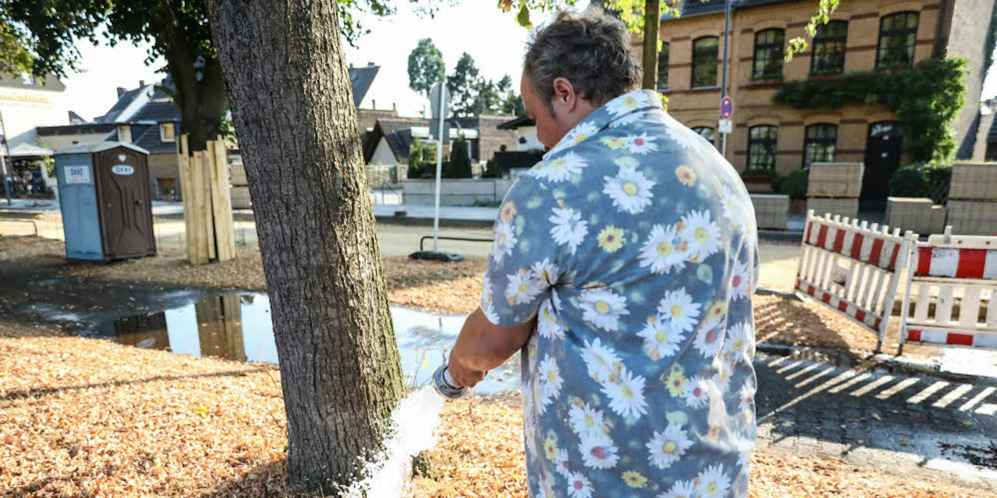 Mit Säcken, Rohren und WasserthekenStadt Köln wässert junge Bäume