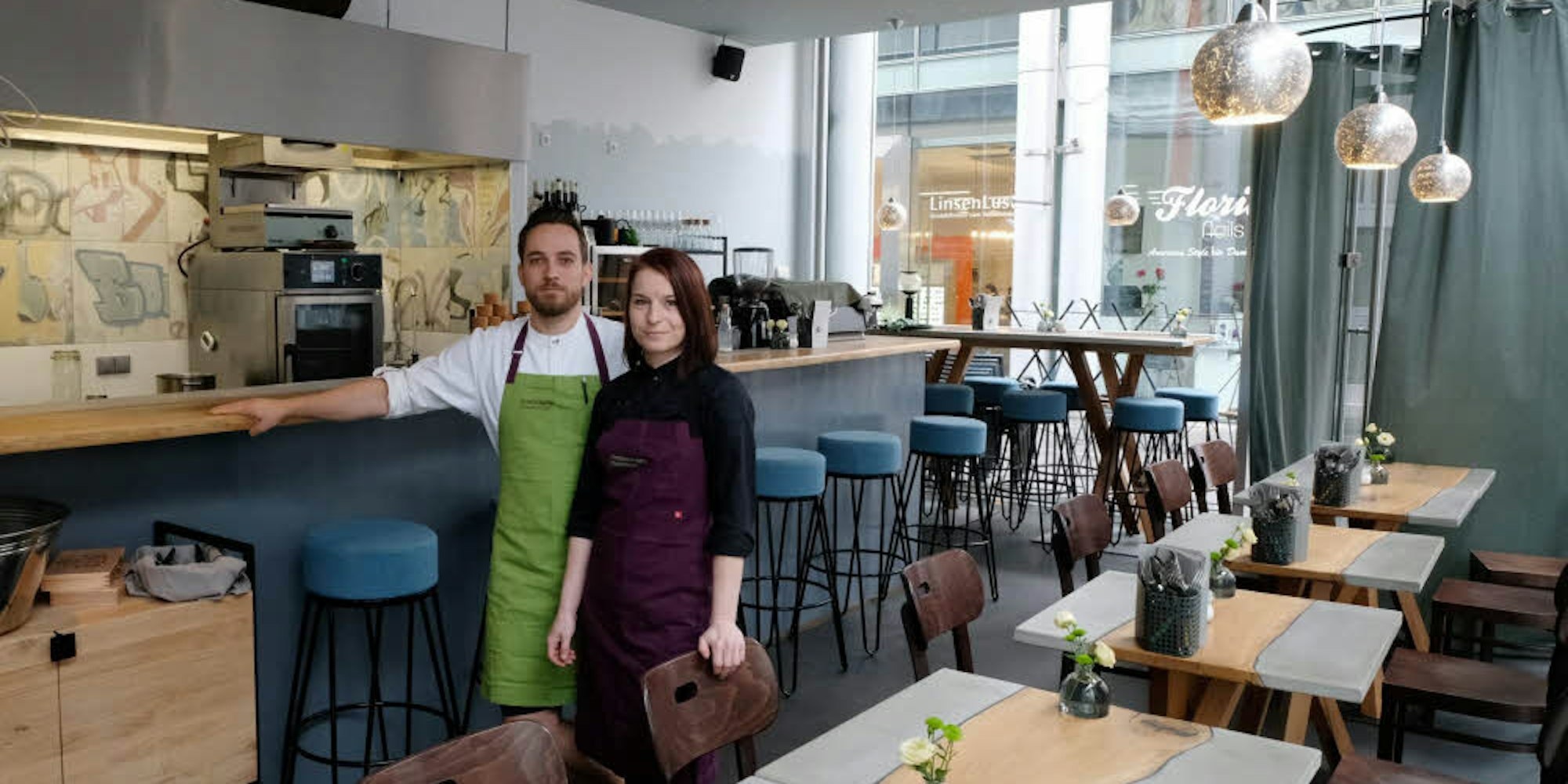 Sonja Baumann und Erik Scheffler im Neo/Biota. Hier gibt es das etwas andere Frühstück und abends Menüs.