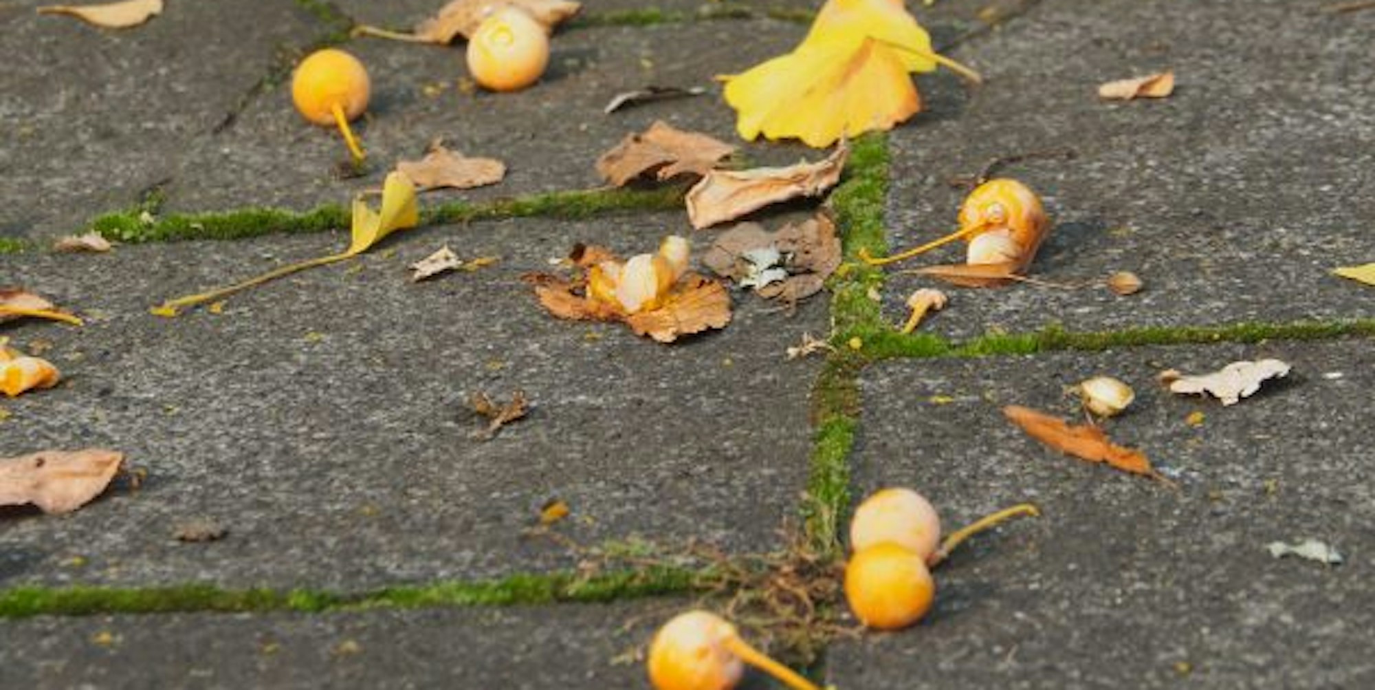 Gingko-Früchte auf dem Gehweg der Ulmenstraße