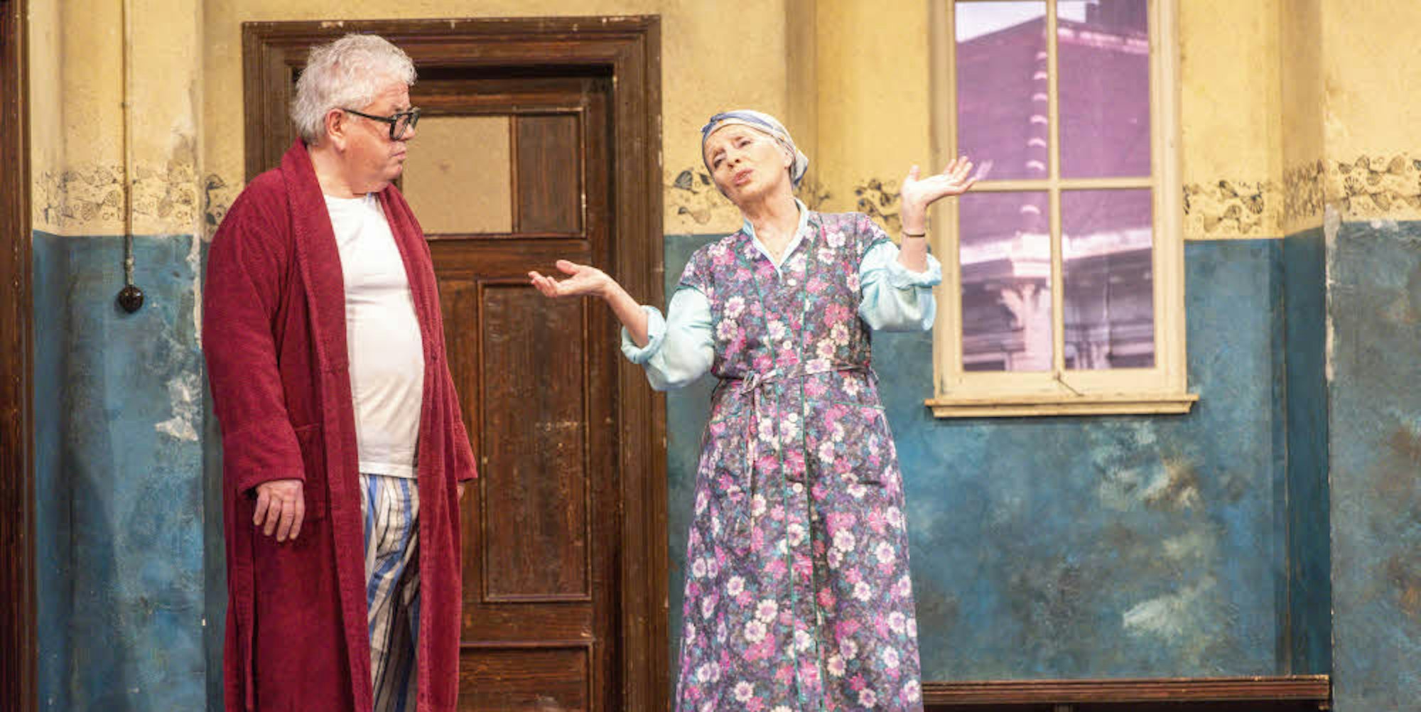 „Tratsch im Treppenhaus“ wird noch bis 31. Dezember und dann vom 18. Januar bis 17. Februar jeweils Freitag (20 Uhr), Samstag (17 und 20 Uhr) und Sonntag (14 und 17 Uhr) gespielt. Dazu an Silvester um 17 und 20 Uhr. Karten kosten ab 32 Euro.