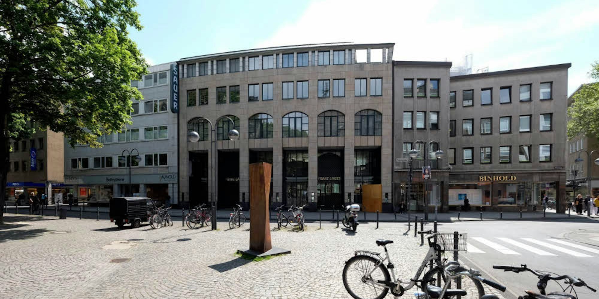 Das leerstehende früherer Modehaus Franz Sauer an der Minoritenstraße erstreckt sich bis zur Straße Kolumbahof.