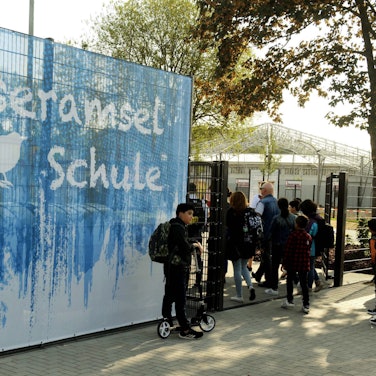 Das „Snake“-Gebäude am Wasseramselweg ist das zweite Interim für die Gesamtschule in Vogelsang