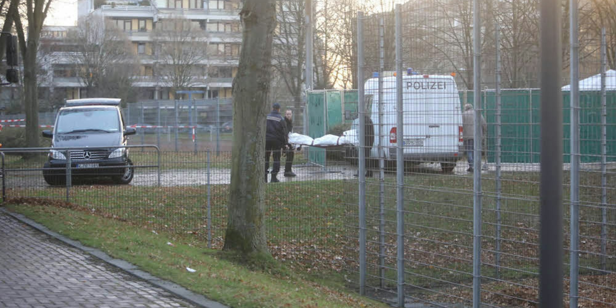 Der Leichnam von Tina G. in der Nähe des Weidener Schulzentrums wird abtransportiert.