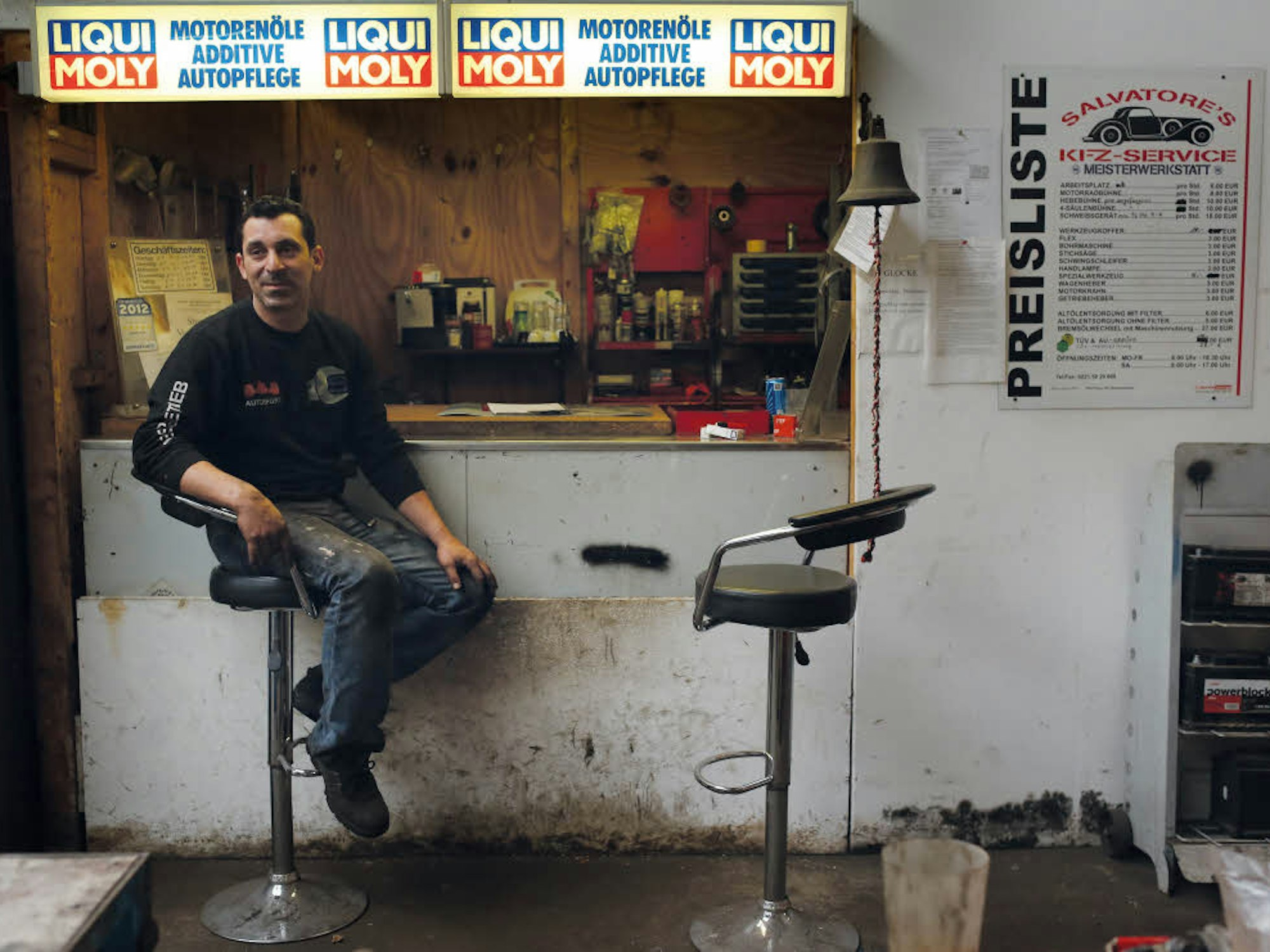 Es ist kurz nach 10 Uhr. Ein neugierig Blick in den Außenbereich des Underground-Clubs zeigt: Es ist noch niemand da. Durch einen zufälligen Schritt weiter taucht ein großes Tor im Hinterhof auf. Salvatores Schrauberhalle. Da ist auf jeden Fall schon jemand wach. Namensgeber Salvatore Nicoletti (37) taucht auf. Der Tag steht offenbar ganz im Zeichen der Italiener. Für Nicoletti hat er aber sehr schlecht angefangen. „Heute morgen habe ich die Kündigung für meine KFZ-Werkstatt bekommen. Das war schon lange klar, aber jetzt ist es offiziell.“ Seit 13 Jahren schraubt er tagsüber neben dem Club und trinkt dort zum Feierabend mal ein Bierchen. „Ich habe zehn Makler im Einsatz. Bisher hat mir keiner eine neue Halle anbieten können“, erzählt er enttäuscht. Der angrenzende Club soll auch weg. Aber der gebürtige Italiener ist optimistisch.