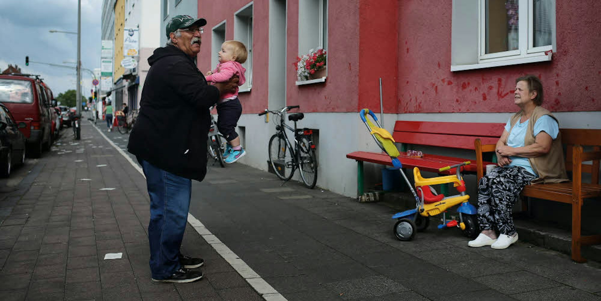 Mit seiner Frau Hannelore (60) und der kleinen Urenkelin Marie (1) genießt er trotzdem die Sonne und seinen Kaffee. Jeder, der vorbeigeht, scheint ihn zu kennen – er grüßt zurück. Zu Beginn ist der rüstige Mann sehr wortkarg, lässt seine Frau reden. Mit der Zeit scheint er Vertrauen zu fassen. „Im August bin ich 50 Jahre in Deutschland, und ich bin mit Leib und Seele Kölner“, erzählt er. Früher hat er beim Grünflächenamt gearbeitet, daher hat er auch seine heiß geliebte Bank.