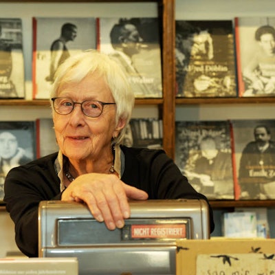 Junge Leute kommen staunend herein und machen Selfies in dem Raum, der mit seinen hohen Bücherregalen, dem Ohrensessel, den Autorenbildern und den Perserteppichen aussieht wie ein Wohnzimmer. „Als sei eine richtige Buchhandlung etwas Exotisches“, sagt die 85-Jährige und lacht.